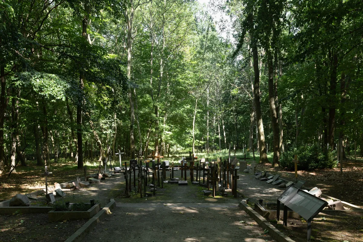 Спецлагеря — это часть ГУЛАГа, его своеобразная франшиза в Германии. Важно эту связь подсвечивать. Я недавно побывала в музее бывшей тюрьмы КГБ в Потсдаме, экспозиция которой напрямую об этом говорит. В этой тюрьме сидели немцы, обвиненные в основном в шпионаже или «антисоветской пропаганде». Между 1950-м и 1952-м годами заключенных перевезли в Москву, расстреляли и захоронили на Донском кладбище. Сейчас там стоит посвященный им памятник. У меня сложился пазл. Я описывала этот памятник в Москве, а оказавшись в Потсдаме, увидела, откуда начинался их путь на это кладбище.