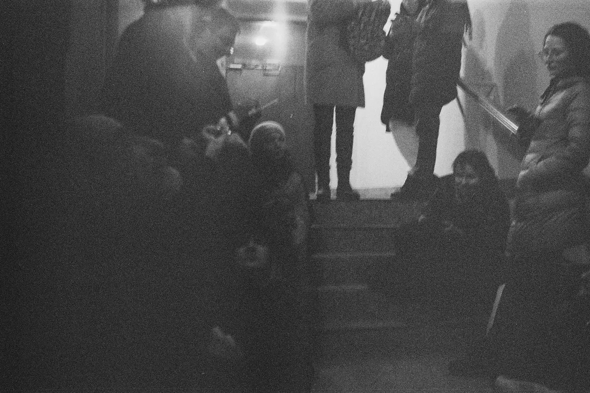 Мы караулили около офиса по очереди. Было холодно. Мы грелись в соседнем баре. Когда он закрылся, стали греться в соседнем подъезде. Коллеги внутри офиса вели протокол действий силовиков. Их было много, и в какой-то момент им самим стало скучно. Мы видели, как они читают книжки и газеты. Они еще пытались ими закрыть стеклянные двери и окна, через которые мы на всё это смотрели. В офисе еще какая-то уютная гирлянда оставалась гореть…