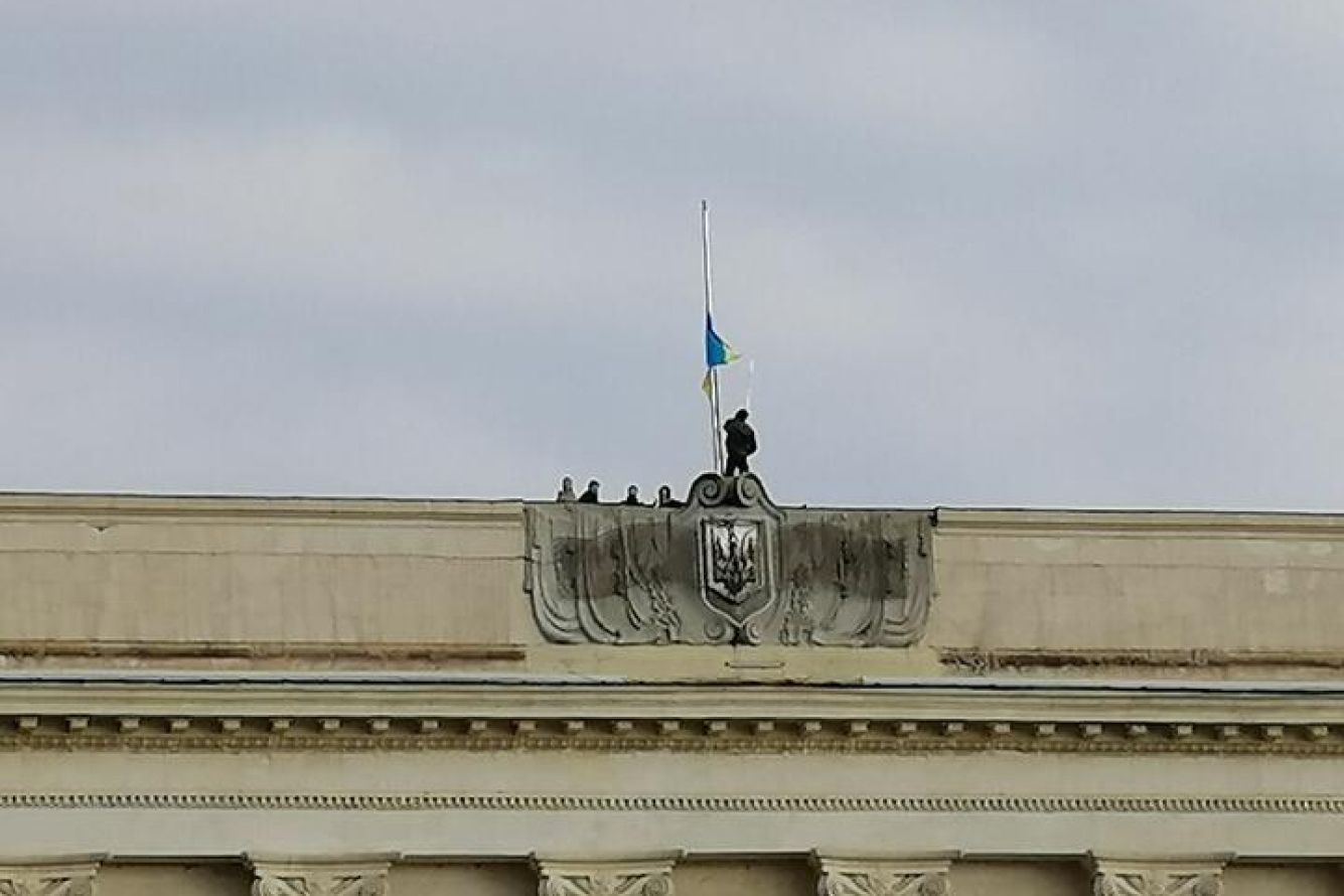 “We went to the park to look at the toppled television tower, and we heard from people there that they’d seen our soldiers in the Tavrichesky neighborhood, and that a car flying a Ukrainian flag drove through the city center. We went downtown, to the administrative area, and people were gathering there. They were shouting ‘Glory to Ukraine! Glory to the heroes!’ and hanging flags on the administration, on the city sign, on stores. Cars in the center stopped and honked. Everyone was walking around joyfully. People said that our troops were getting into Kherson little by little. I think it will take a long time to clean up the city, there are still armed Russian soldiers dressed as civilians here.”
