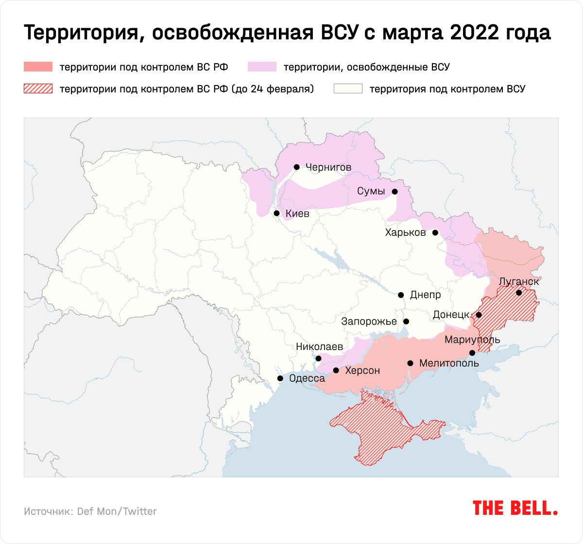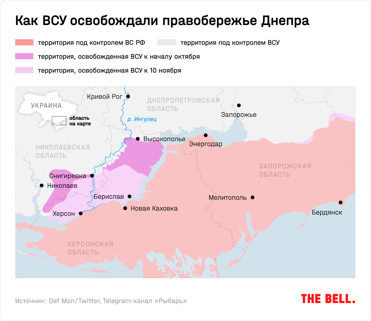 Российская армия, освободив Херсон, упростила себе задачу обороны остальных территорий, укрывшись на левом берегу за труднопреодолимой водной преградой Днепра и в очередной раз сократив территорию, которую надо оборонять. Но на этом выгоды вынужденного отступления заканчиваются. С учетом освобожденного херсонского правобережья Россия уже утратила почти половину украинских территорий, закхваченных после 24 февраля.