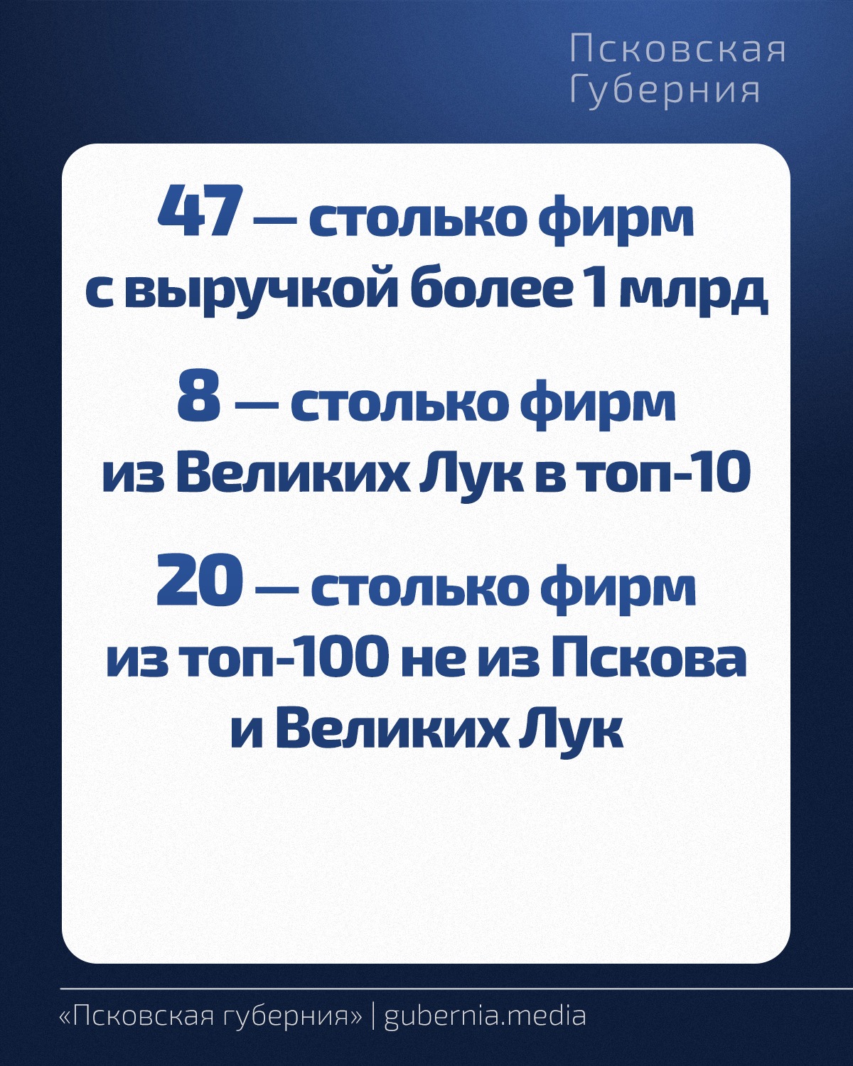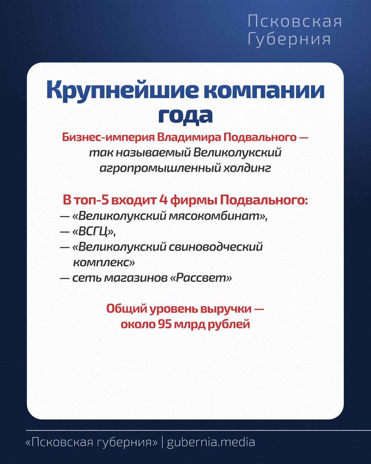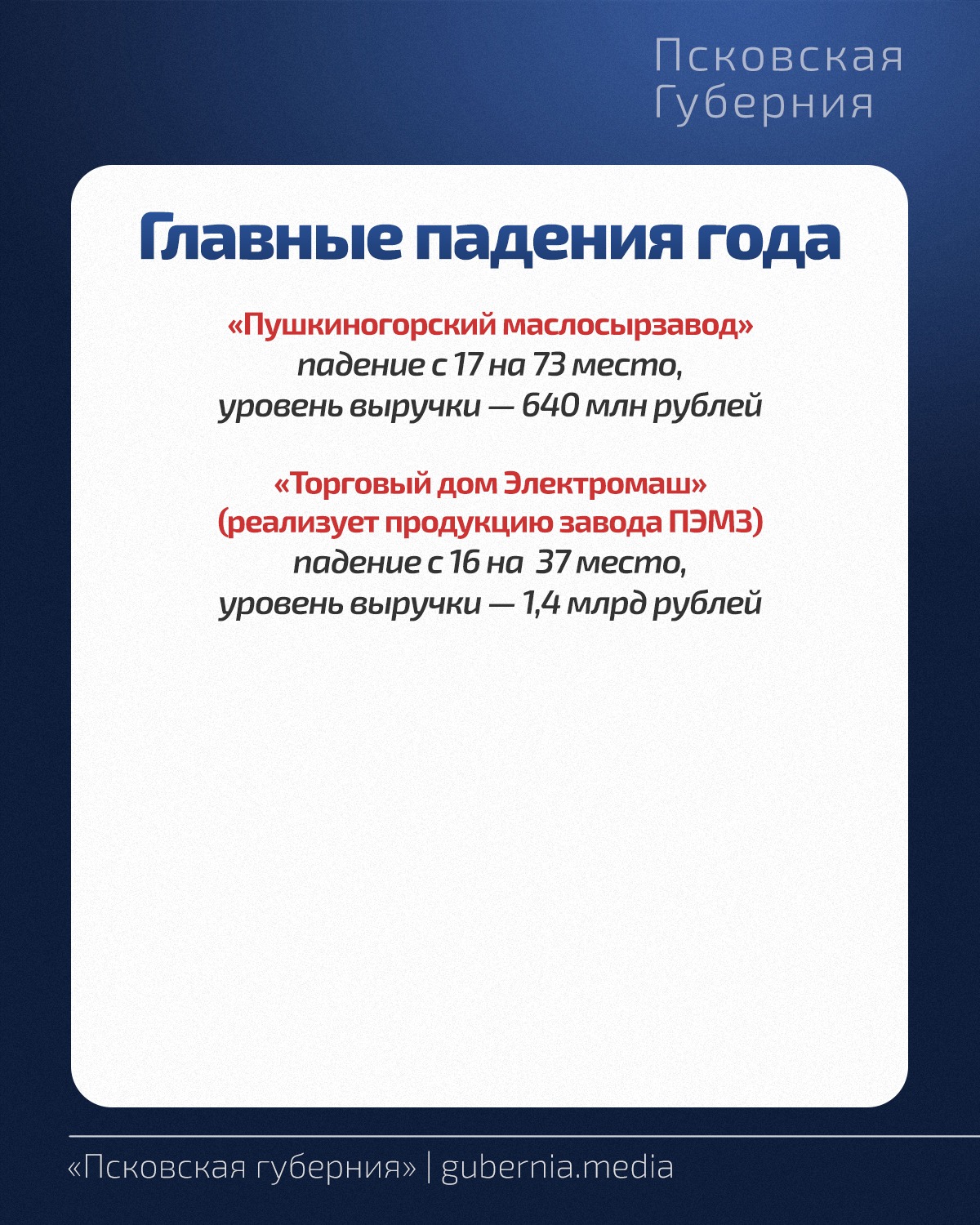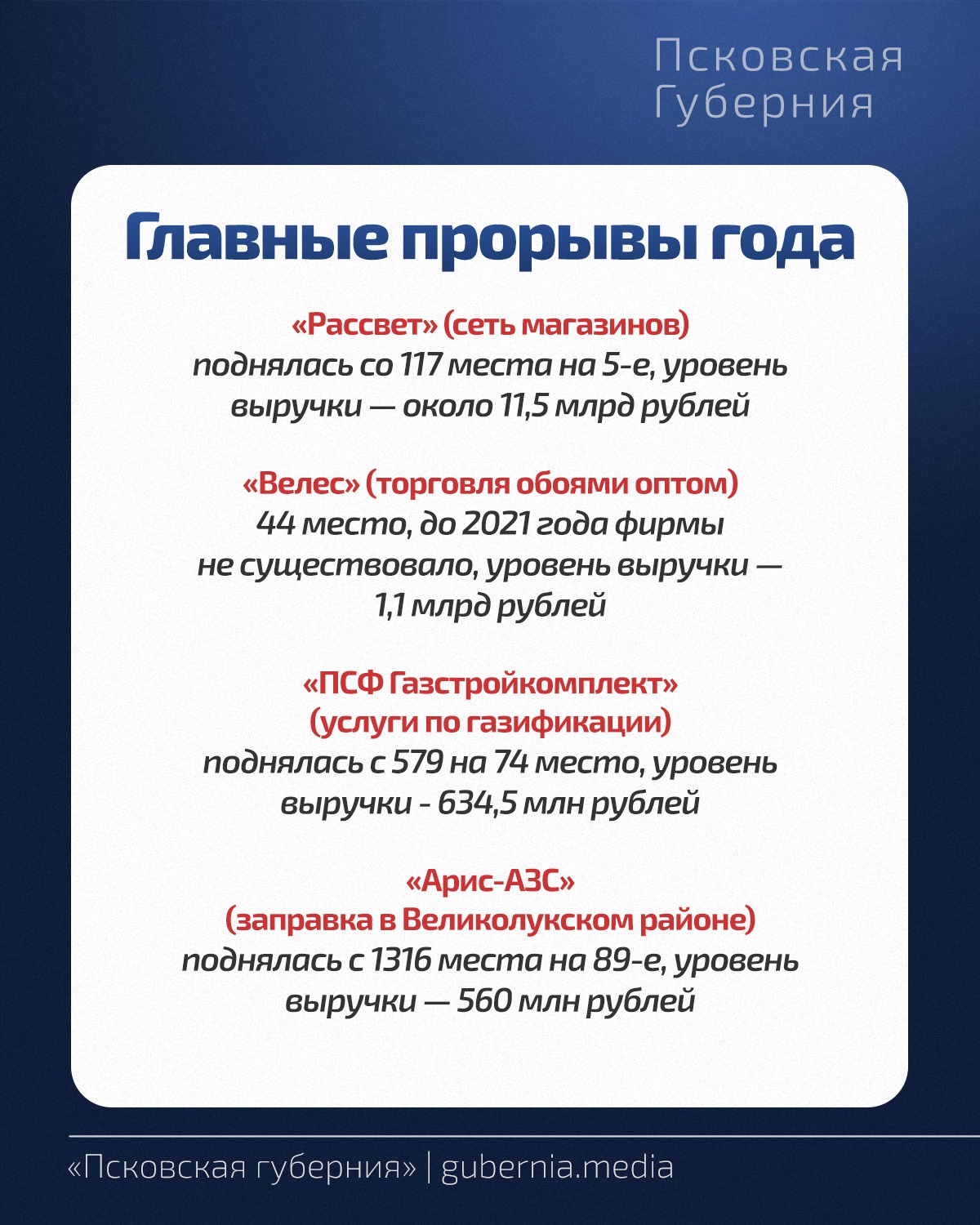 В наших карточках главные итоги года: прорывы, падения, бизнес-империя, топ-3 фирм не из Пскова и Великих Лук. А вот и сам РЕЙТИНГ