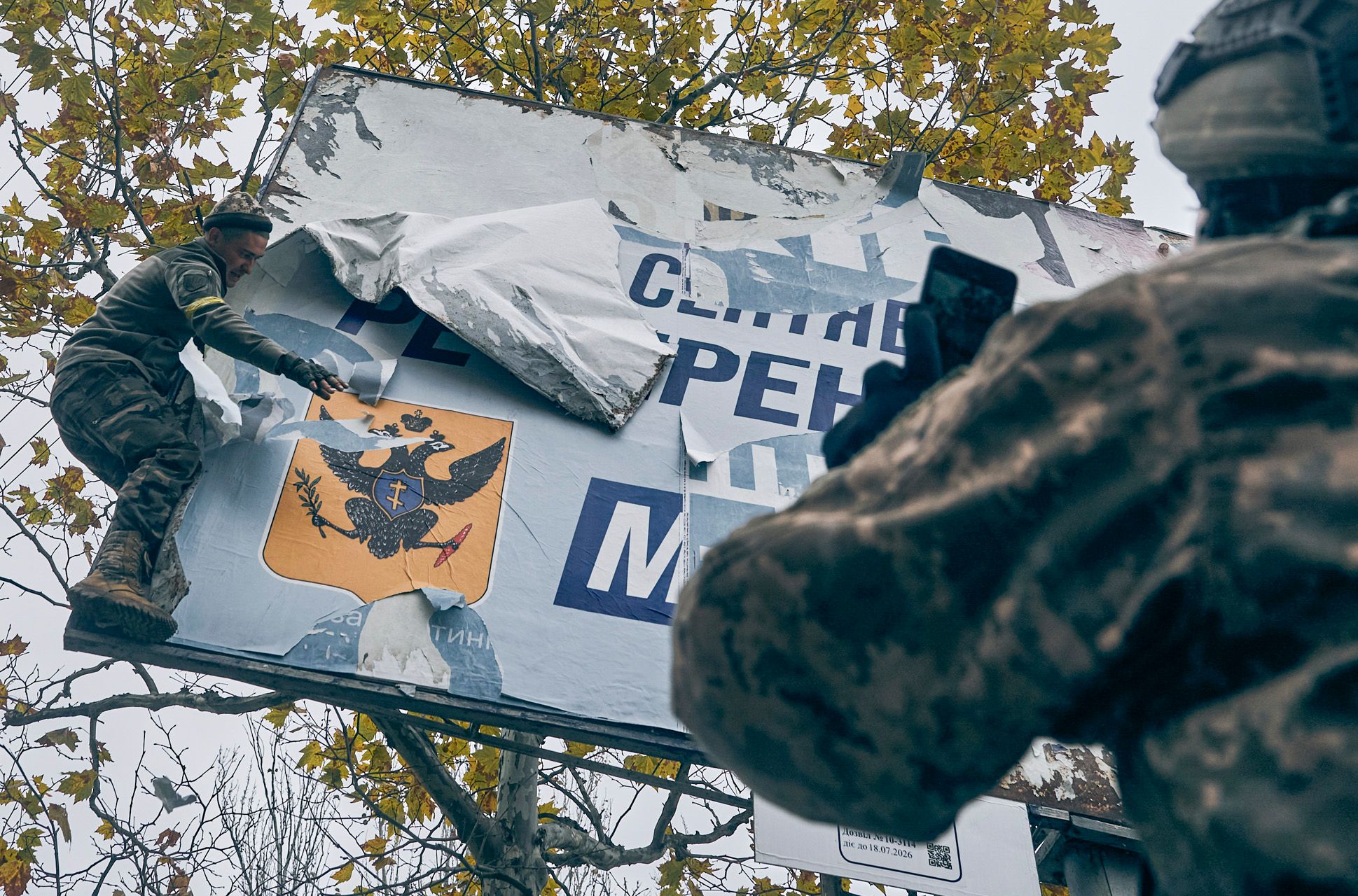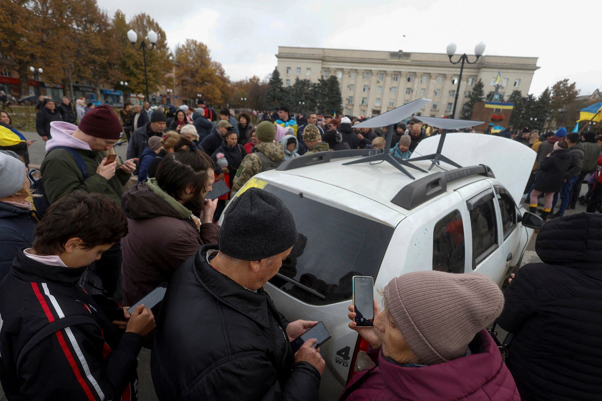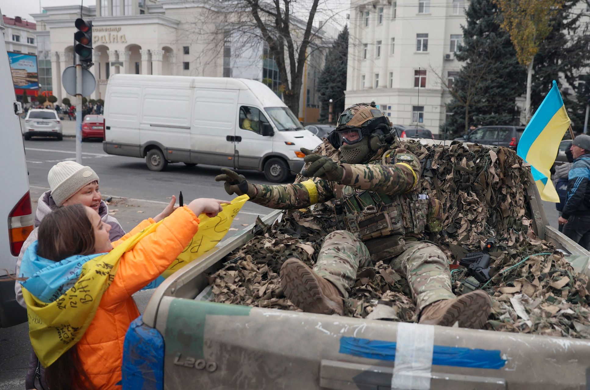 Bernat Armangue / AP / Scanpix / LETA Украинский военный обнимает свою мать после освобождения села Вавилово Николаевской области, которое перешло под контроль ВСУ 10 ноября. Вавилово находится между Николаевом и Херсоном, куда украинские войска вошли 11 ноября. В тот же день глава Николаевской областной военной администрации Виталий Ким заявил, что почти вся Николаевская область освобождена, но под российским контролем остается территория Кинбурнской косы — песчаного полуострова, который с одной стороны омывается Черным морем, а с другой — Днепровским лиманомAFP / Scanpix / LETA Житель Херсона закрашивает символ Z на кузове автомобиля после освобождения города украинскими военными. Херсон был единственным областным центром Украины, который Россия захватила в ходе полномасштабного вторжения. Город провел в оккупации более восьми месяцевBernat Armangue / AP / Scanpix / LETA Жители села Новокиевка, расположенного в 26 километрах от Херсона, получают гуманитарную помощь. Как и Херсон, Новокиевка перешла под контроль ВСУ 11 ноябряEfrem Lukatsky / AP / Scanpix / LETA Житель Херсона целует украинского военного во время празднования освобождения городаAFP / Scanpix / LETA Жительницы Херсона приветствуют украинского военногоValentyn Ogirenko / Reuters / Scanpix / LETA Жители Херсона подключаются к мобильной связи возле тарелок Starlink. После освобождения в городе частично восстановлена мобильная связь, уже доступны связь и интернет LTE от оператора «Киевстар»Libkos / AP / Scanpix / LETA Украинский военный и жители Херсона смотрят на привязанных к столбам мародеров. После освобождения города появились свидетельства того, что мародеры грабили квартиры горожанMetin Aktas / Anadolu Agency / ABACAPRESS / ddp images / Vida Press Остатки размещенного оккупационной администрацией баннера в поддержку России на улице Херсона.Metin Aktas / Anadolu Agency / ABACAPRESS / ddp images / Vida Press Когда город перешел под контроль ВСУ, жители начали снимать эти плакатыMetin Aktas / Anadolu Agency / ABACAPRESS / ddp images / Vida PressMetin Aktas / Anadolu Agency / ABACAPRESS / ddp images / Vida PressLibkos / AP / Scanpix / LETALibkos / AP / Scanpix / LETA Вид на разрушенный Антоновский мост. Вероятно, его подорвали российские военные во время отступления из города. О взрыве на Антоновском мосту рассказывали провластные СМИ и «военкоры», но российские власти не подтверждали, что уничтожили мост после ухода из Херсона