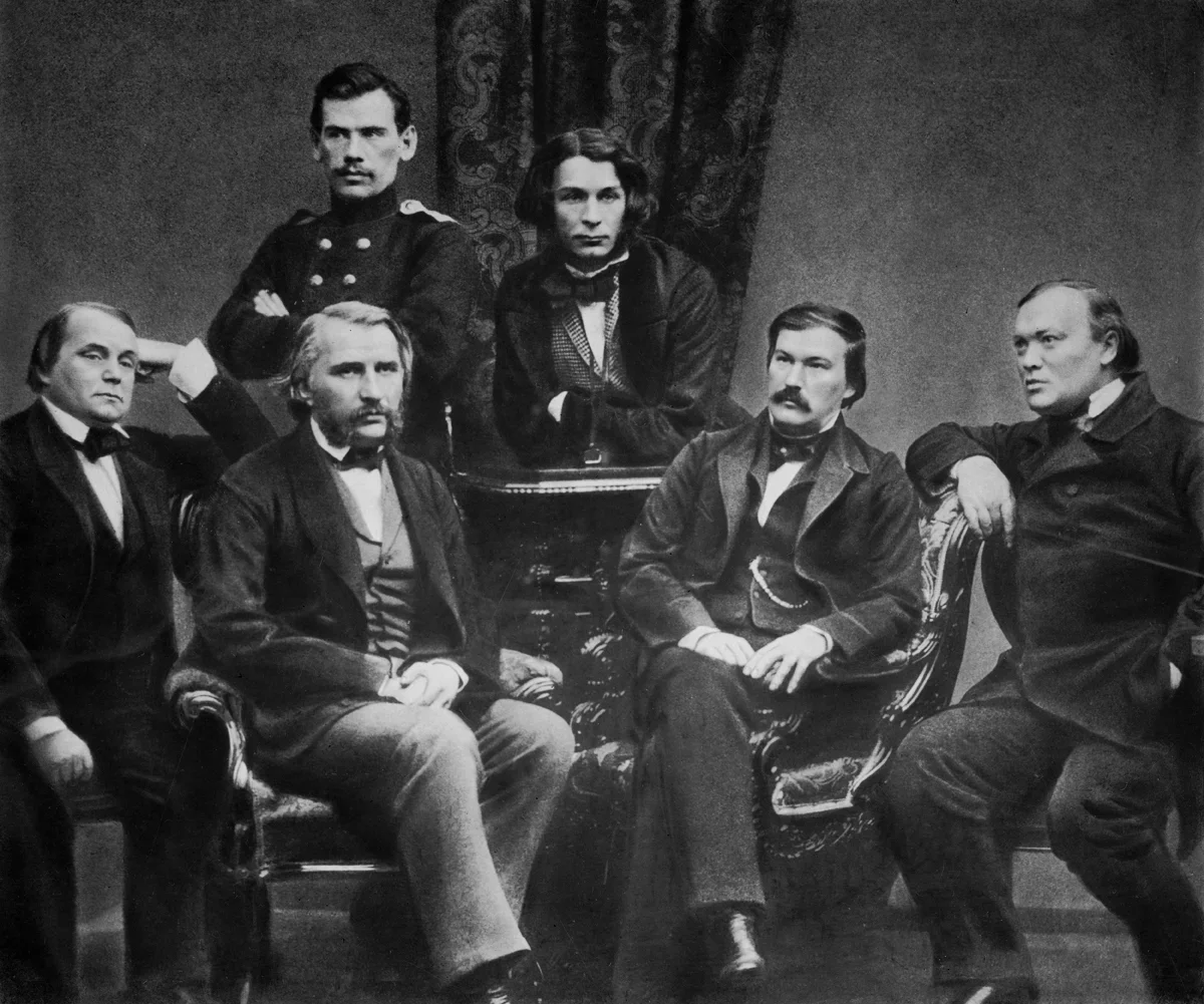 Трудно было ему — воспитанному, мягкому, культурному человеку — с русскими писателями. Толстой то начинал торговать свиньями и лошадьми, а то «завел себе сундук с мистической моралью и кривотолкованиями». Достоевский Тургенева ненавидел, обзывал «старичком» и в припадке ревности к его славе в экстазе писал свою невменяемую пушкинскую речь, которой хотел затмить речь Тургенева. Экзальтированные дамы несли Достоевскому венок и с вызовом кричали повстречавшемуся им Тургеневу: «Не вам! Не вам!» Ехидный Салтыков-Щедрин обзывал его павлином, распускающим хвост, и даже флегма Гончаров обвинил его в плагиате. А был ведь еще критик Антонович, пырявший его своей статьей, как ножом. Нет, за парижскими обедами с Флобером, Доде и Золя ему было проще, легче.