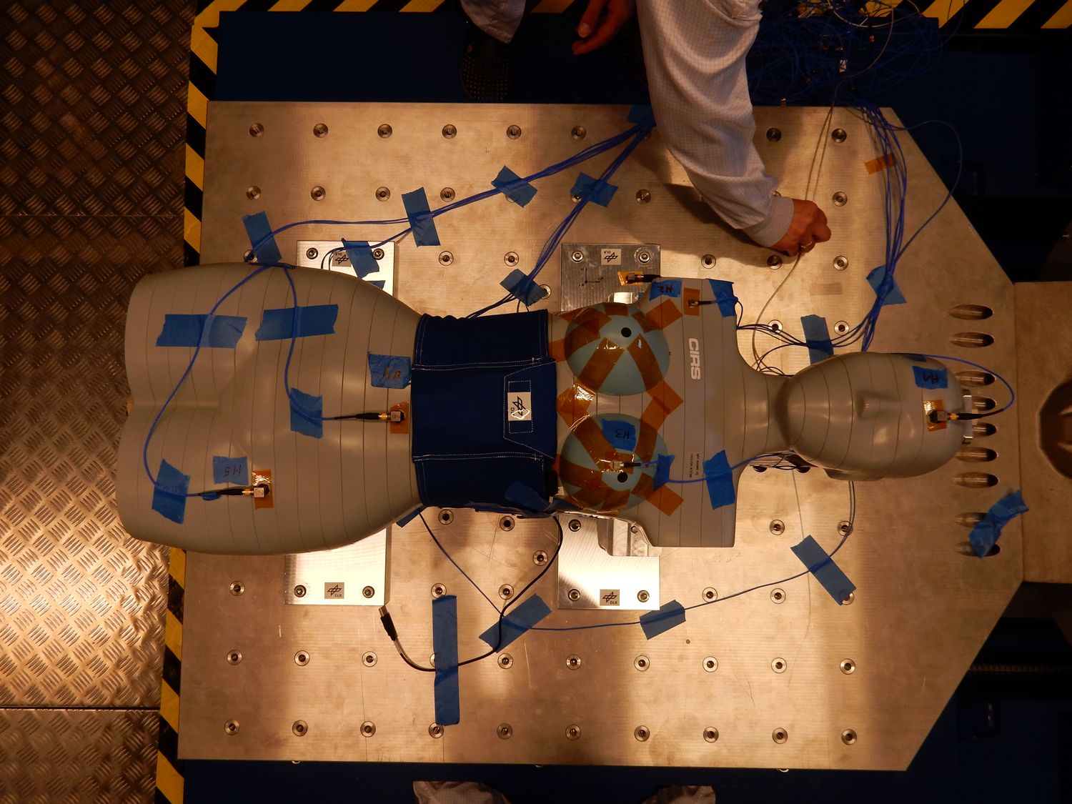 DLR «Фантом» Хельга проходит первое испытание вибрациями в Институте космических систем в Бремене. Задача эксперимента была в том, чтобы имитировать механические воздействия на манекен во время реального старта