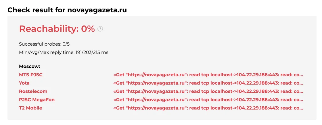 Сайты российского издания «Новая газета» и сайта-конструктора «Свободное пространство» перестали открываться в России, свидетельствуют данные сервиса GlobalCheck.