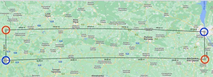 Agentstvo has noticed that the coordinates with this longitude match a commercial warehouse nearby a train station in Lviv. The latitude of the location in Przewodów matches a shipworks and armament plant in Kyiv.