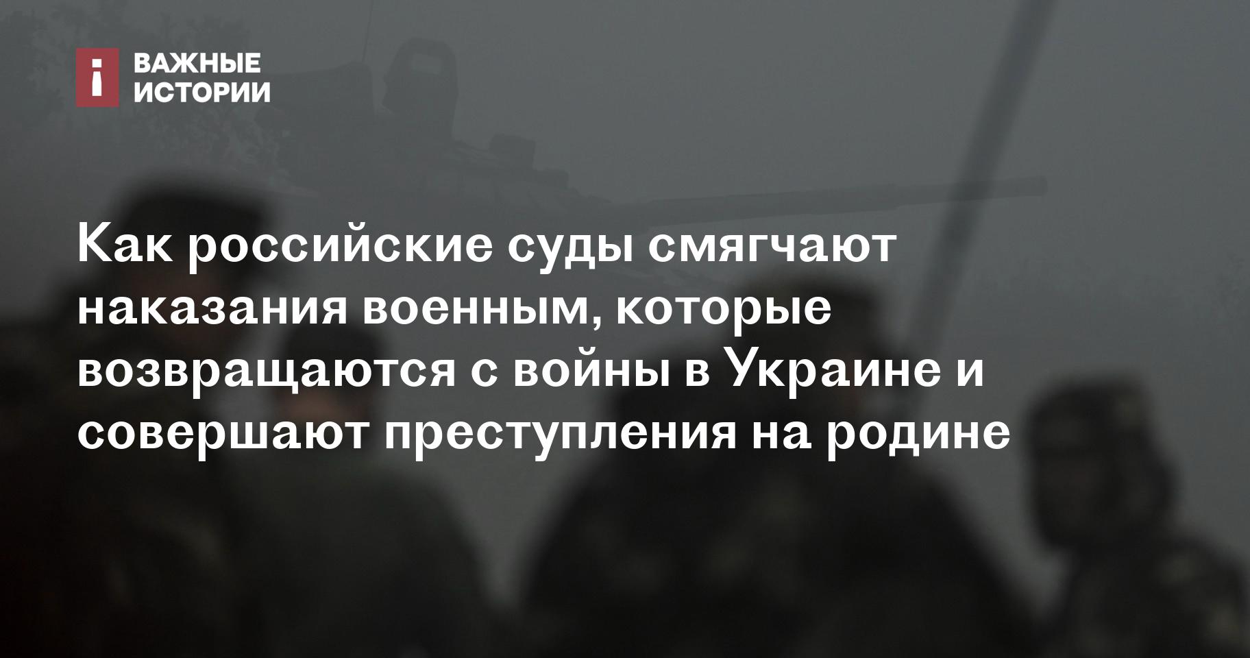 «Важные истории» обнаружили более 80 приговоров по уголовным делам, которые гарнизонные военные суды вынесли после 24 февраля воевавшим в Украине российским солдатам. В большинстве из них судьи сочли «участие в специальной военной операции» смягчающим обстоятельством при назначении наказания. Убийства, кражи, наркотики и взятки — рассказываем, за что судят и как наказывают тех, кто вернулся с войны.