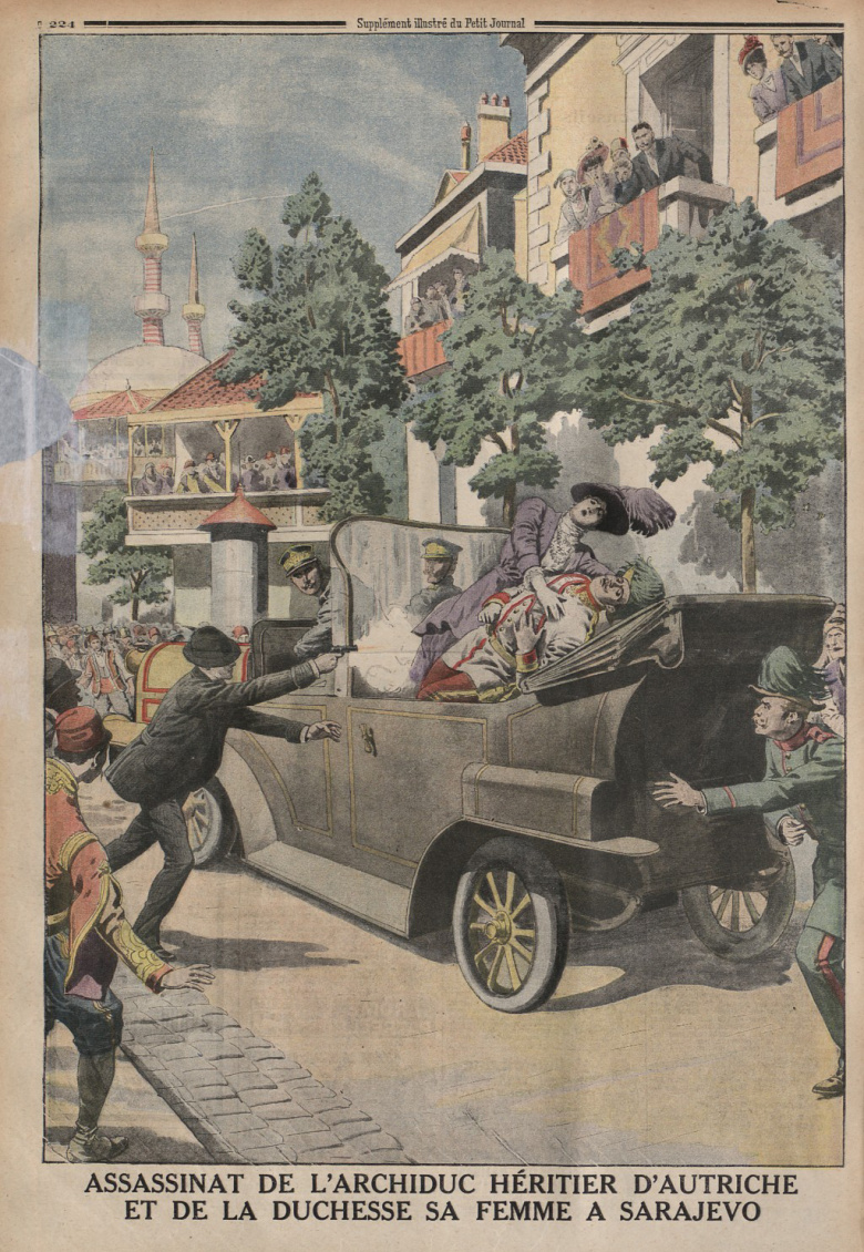 Убийство эрцгерцога Франца Фердинада и его супруги-герцогини в Сараево. Иллюстрация в издании Le Petit journal, 12 июля 1914 г.