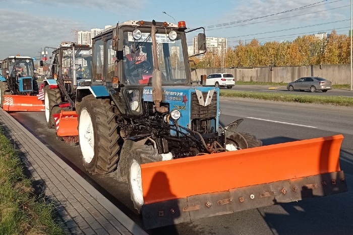 Учения по уборке снега в Петербурге 10 октября. Фото: Олег Зотов