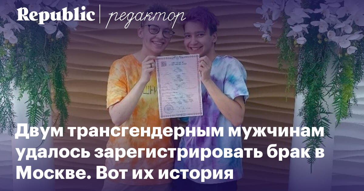 Р: Пока мы таких больше не знаем. Несколько лет назад была история в Казани (в 2019 году в Татарстане поженились трансгендерный мужчина и трансгендерная женщина. — Republic). Но они гетеро. Эти две девушки в Питере (в 2014 году в Петербурге поженились две женщины, одна из них транс-женщина, которая на тот момент не успела поменять документы. — Republic). Больше я таких историй не знаю.