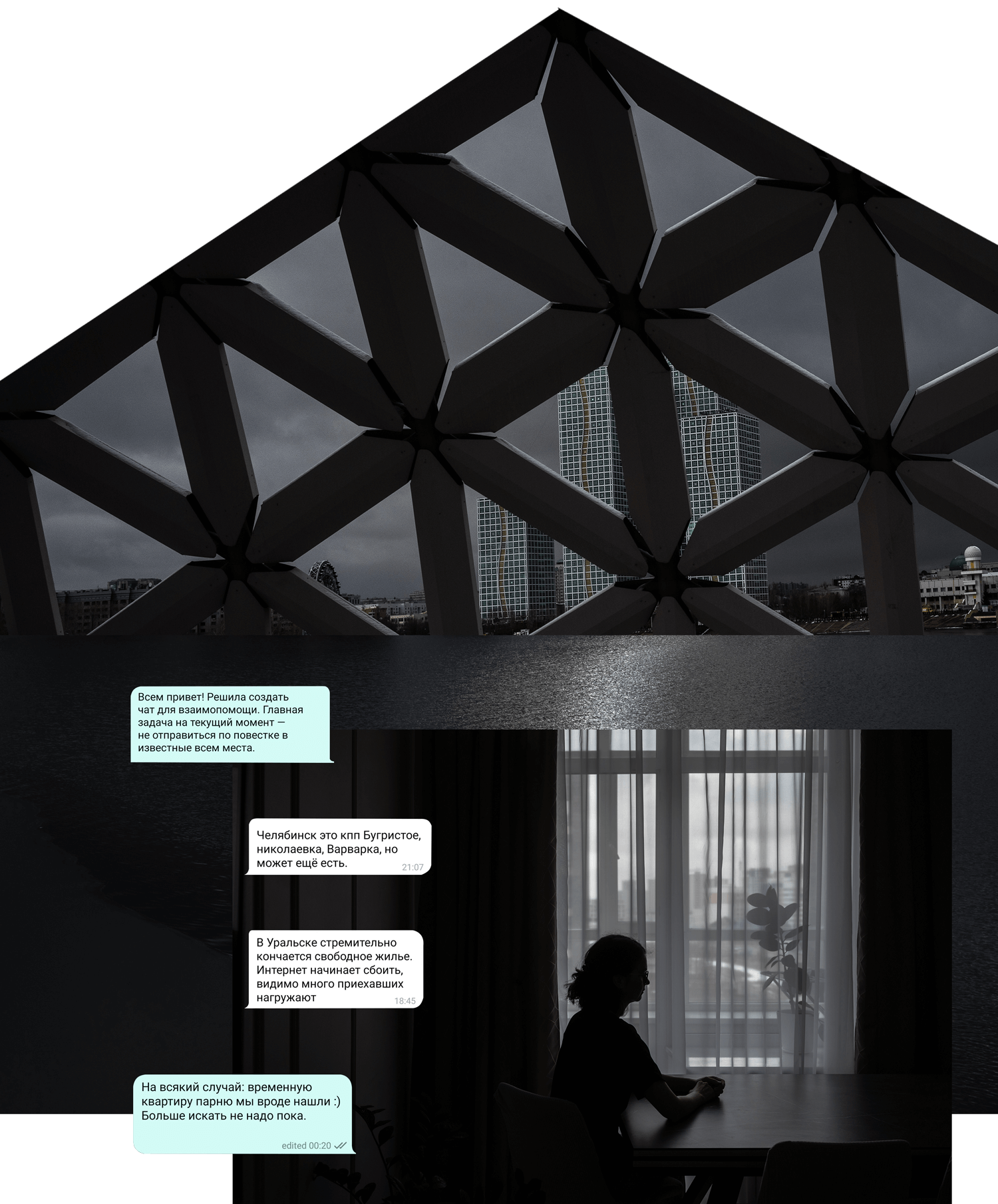 «Всегда, мне кажется, тяжелее переживать за близкого, чем за себя, когда угрожает опасность, — объясняет идею чата Марина. — Очень хотелось поддержать всех девушек в первую очередь — и помочь всем мужчинам либо уехать, либо остаться, но так, чтобы в случае экстренной ситуации уже был план, что делать».