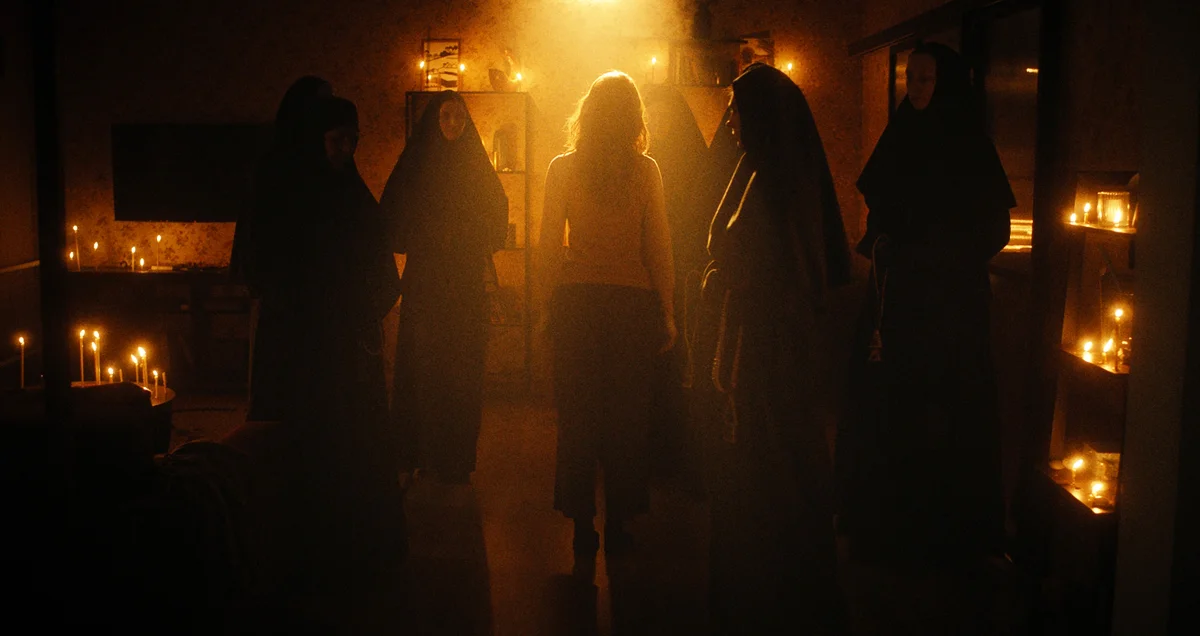 А на экране компьютера вместо незнакомки с изуродованным лицом (почти неузнаваемая Аня Чиповская) появляются черные сестры. Когда-то темная сила, приняв облик монстров, домогалась их крови и плоти. И сестры заперлись в храме — сожгли себя; прах их развеян; если кому худо — придут на помощь. Теперь они — словно Мойры — осуществляют веление непреклонной и неотвратимой силы.