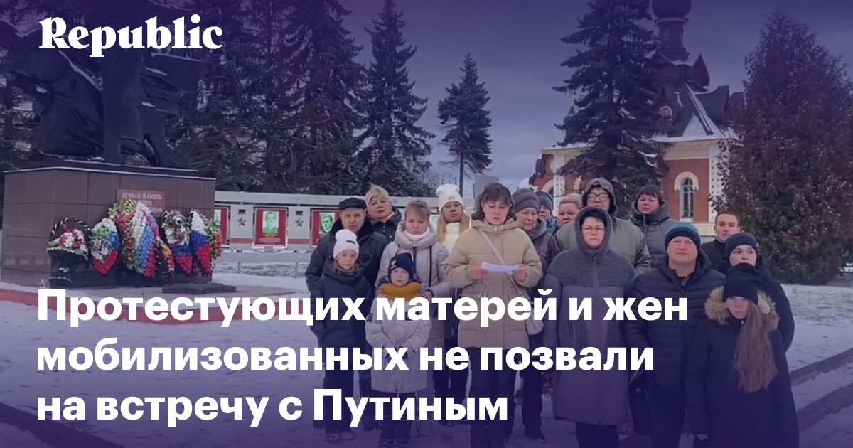 Владимир Путин в ближайшее время намерен встретиться с семьями мобилизованных, такая встреча сейчас готовится. Об этом сегодня сообщил пресс-секретарь президента РФ Дмитрий Песков. Однако самых активных матерей и жен резервистов, которые жалуются на серьезные проблемы мобилизации в своих многочисленных обращениях и устраивают протестные акции, на эту встречу пока не позвали.