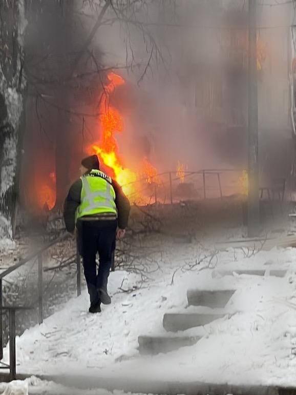 ОБНОВЛЕНИЕ. Киевская городская военная администрация сообщила, что в результате попадания повреждено двухэтажное здание. Три человека погибли и шесть пострадали.