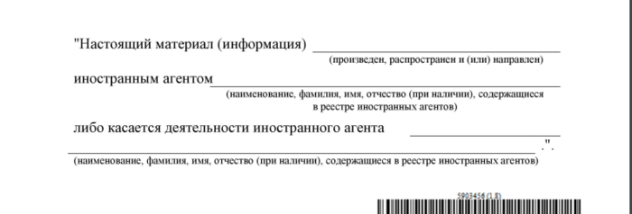 Теперь граждане, признанные «иноагентами», будут обязаны ставить новую плашку перед публикациями. Вместо «данного сообщения» они должны будут писать «настоящее сообщение». При этом размер шрифта плашки должен вдвое превышать размер шрифта самого поста, а ее цвет — быть контрастным по отношению к фону.