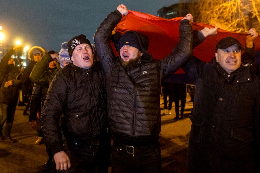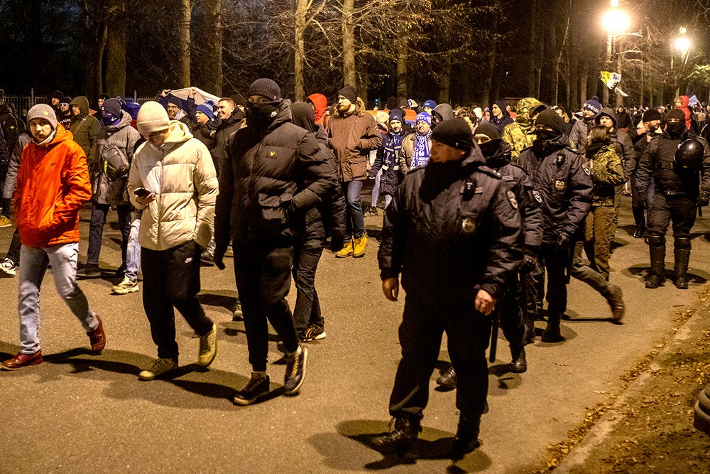 «Бумага» в десяти фото и одном видео показывает, как футбольные фанаты пронесли флаг по Крестовскому острову.