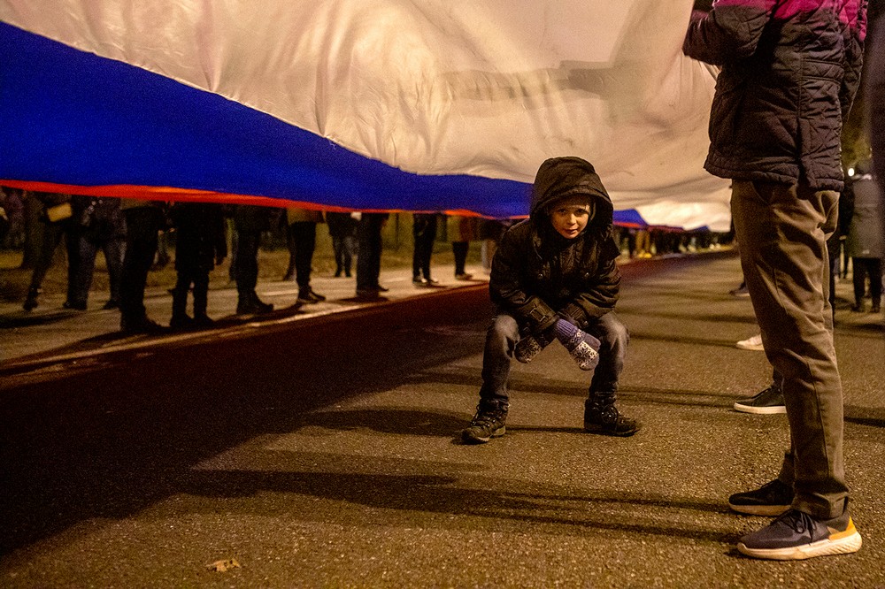 Во вторник, 22 ноября, футбольные болельщики пронесли 600-метровый сербско-российский флаг от станции метро «Крестовский остров» до стадиона «Газпром Арена», где петербургский «Зенит» проводил товарищеский матч с «Црвеной Звездой» из Сербии.