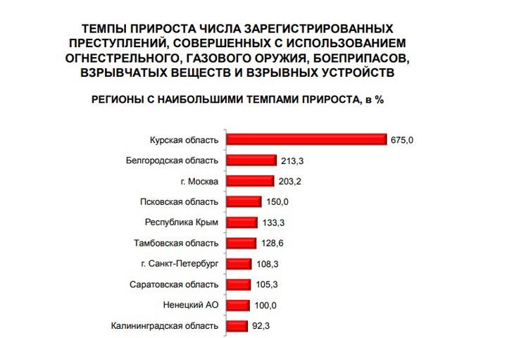 В Курской области показатель вырос на 675%, в Белгородской на 213%, в Москве — на 203%, в Псковской области — на 150%, в Крыму — на 133%.