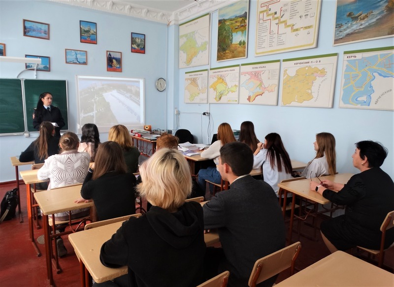 В школах Керчи и Ленинского района российские полицейские проводят встречи с учащимися, на которых агитируют поступление в высшие учебные заведения системы МВД России.