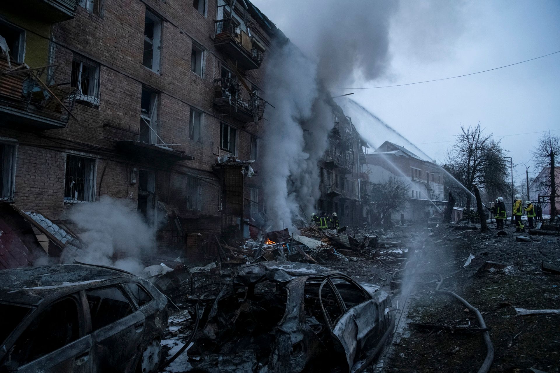 Днем 23 ноября российские войска нанесли массированные удары по нескольким регионам Украины. По словам президента Владимира Зеленского, Россия выпустила 67 ракет, в результате чего были обесточены Киевская, Одесская и Черниговская области. По данным украинской полиции, по всей стране из-за ракетных ударов погибли десять человек. Киев из-за ракетного удара полностью остался без воды. Кроме того, в столице, как сказал мэр города Виталий Кличко, поврежден «инфраструктурный объект», какой именно — не уточняется. Также, судя по видео очевидцев, загорелись несколько автомобилей. По состоянию на утро 24 ноября 70% Киева остается без электричества. По словам Кличко, в городе погибли три человека, в их числе 17-летняя девушка. Еще 11 человек пострадали.