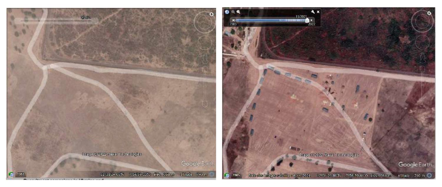 Researchers have established that the first Wagner base in Mali was set up not far from the airport in the country’s capital of Bamako. Satellite images show that construction began on a camp there in November 2021, and that by the end of September 2022, various structures, including barracks, a few central buildings, and warehouses, were visible in the area.