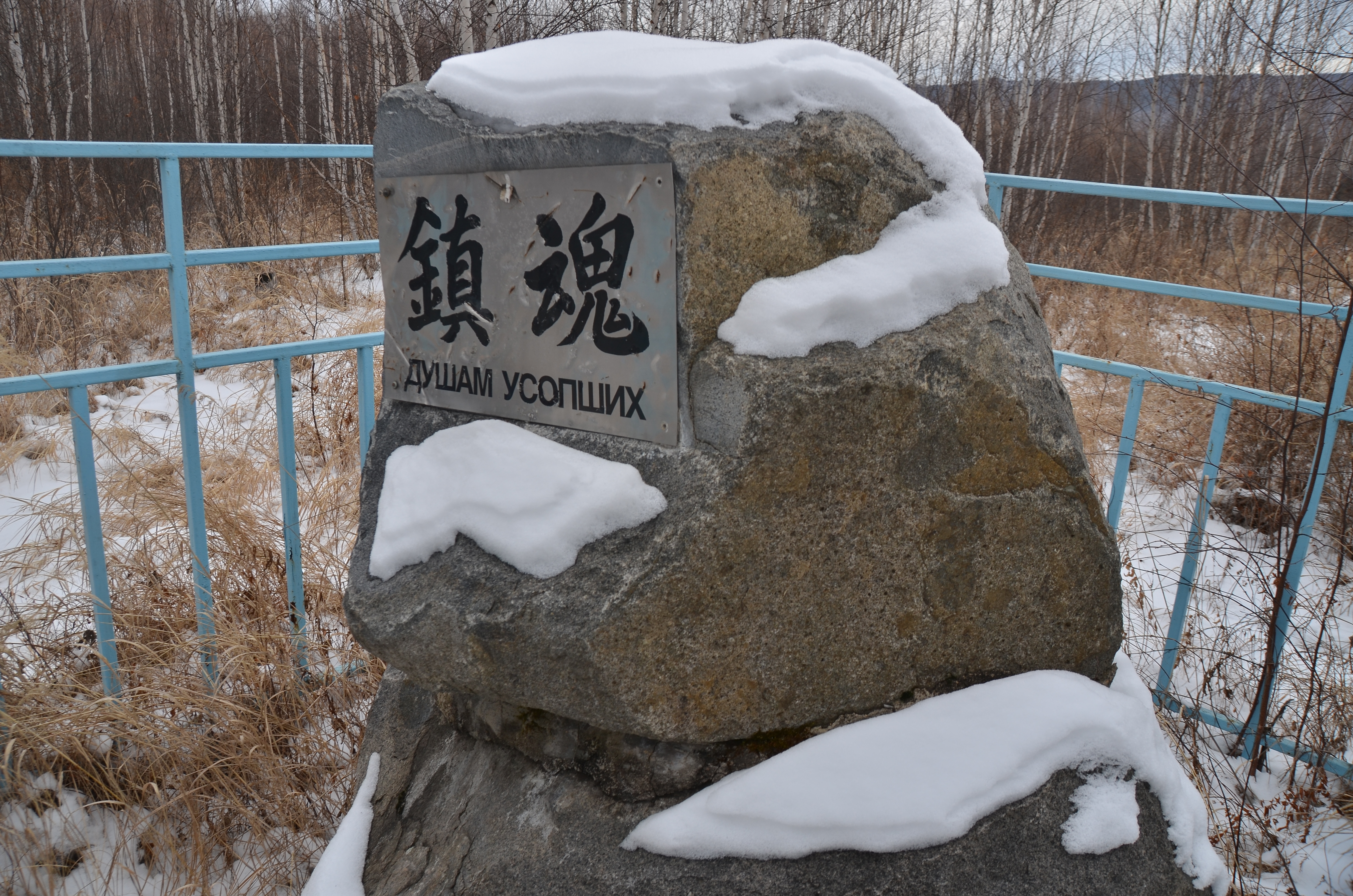 В Букачаче два кладбища. Пенсионер Андрей показывает нам одно из них. Здесь в глубине леса стоит памятная плита захороненным японским военным. С 1945 по 1947 год на территории тогда Читинской области (сейчас Забайкальский край) располагалось пять лагерей военнопленных бывшей Квантунской армии. В Чернышевском районе дислоцировался лагерь №23 с двумя отделениями в Букачаче. Хоронили пленных на отдельном погосте.