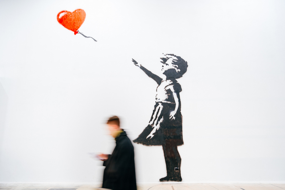 Бэнкси принципиально не выставляет свои произведения за деньги. Он нарушил это правило только один раз — в 2018 году: во время аукциона Sotheby’s за 1,36 миллиона долларов была продана его картина «Девочка с воздушным шаром», однако после окончания торгов спрятанные в каркасе рамы ножи разрезали работу художника на лоскуты.