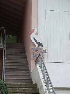 В глубинке же распространен несколько иной символ и обычай. Здесь на каждой улице возле дома стоит шест с высоченной елкой, чуть ниже прикручен аист с именем и датой. По надписи и дате можно догадаться, что недавно в этом доме родился малыш. Иногда изобретательный отец к знаку может добавить какой-нибудь аксессуар, например брандспойт. Мол, точно мальчик! И есть мнение, что он должен стать пожарным, как папа. На елку родственники, друзья и все причастные к знаменательному событию привязывают ленточки с пожеланиями к аисту такого же счастья в семью. Такой знак стоит около полугода.