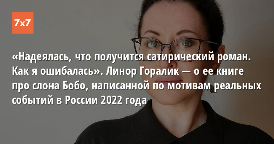 Происходящие события напомнили ей о важной задумке, которую она вынашивала несколько лет, — новом романе, в котором главный герой — слон, идущий через всю Россию к «русскому царю». Линор рассказала «7x7» о романе «Слон Бобо» и о своих антивоенных инициативах.