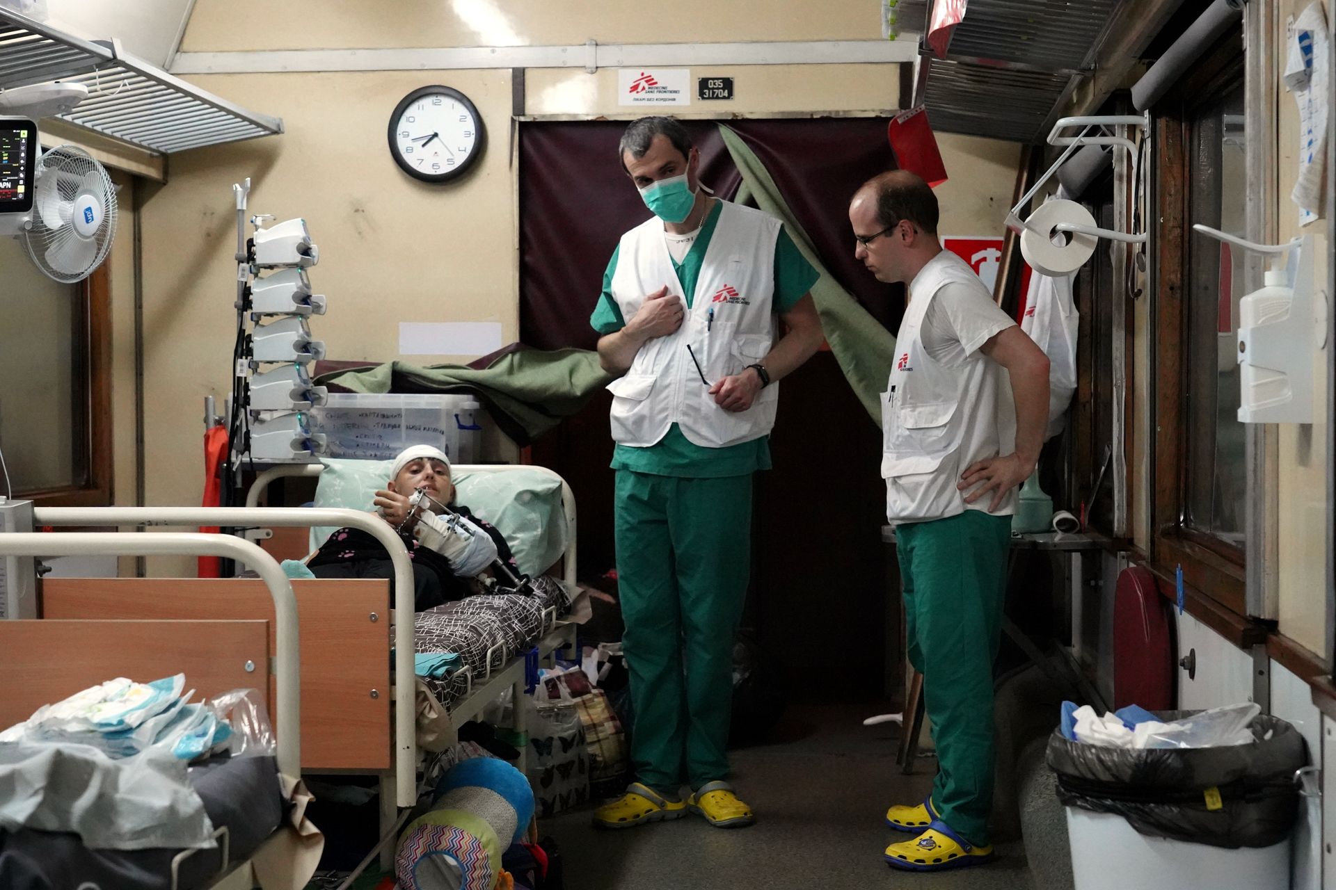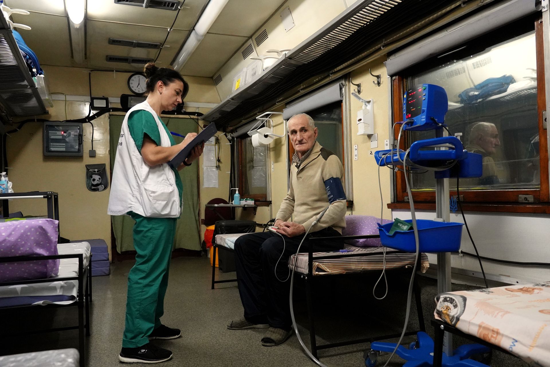Международная организация запустила этот поезд в рамках сотрудничества с Минздравом Украины, чтобы помочь разгрузить больницы вблизи участков боевых действий.
