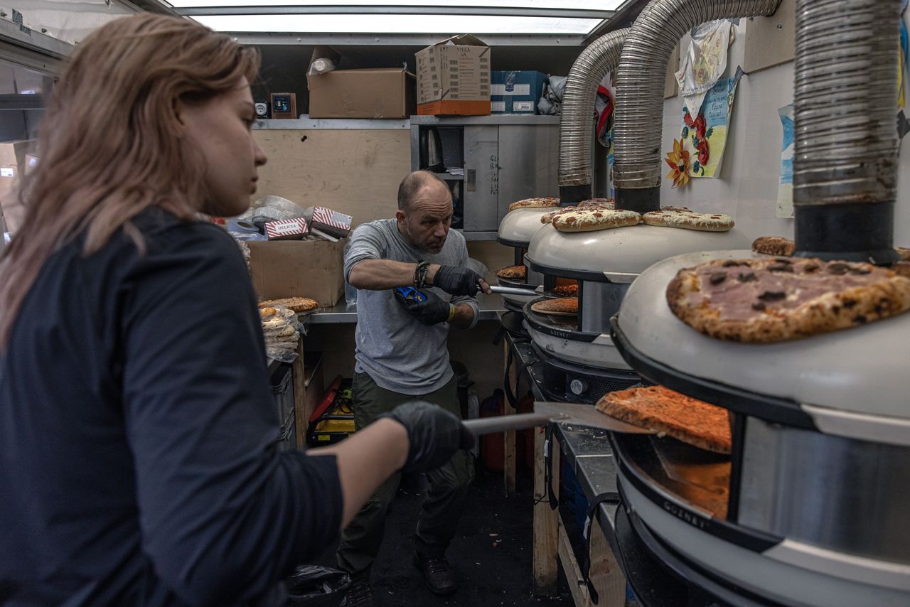 Волонтер из Шотландии Том Хьюз вскоре после начала войны стал готовить бесплатную пиццу для жителей Украины. Том и его сотрудники из разных стран передвигаются по стране на мобильных кухнях. Ежедневно они раздают от трех до четырех тысяч пицц. Том говорит, что готов делать это до тех пор, пока Украина не одержит победу.