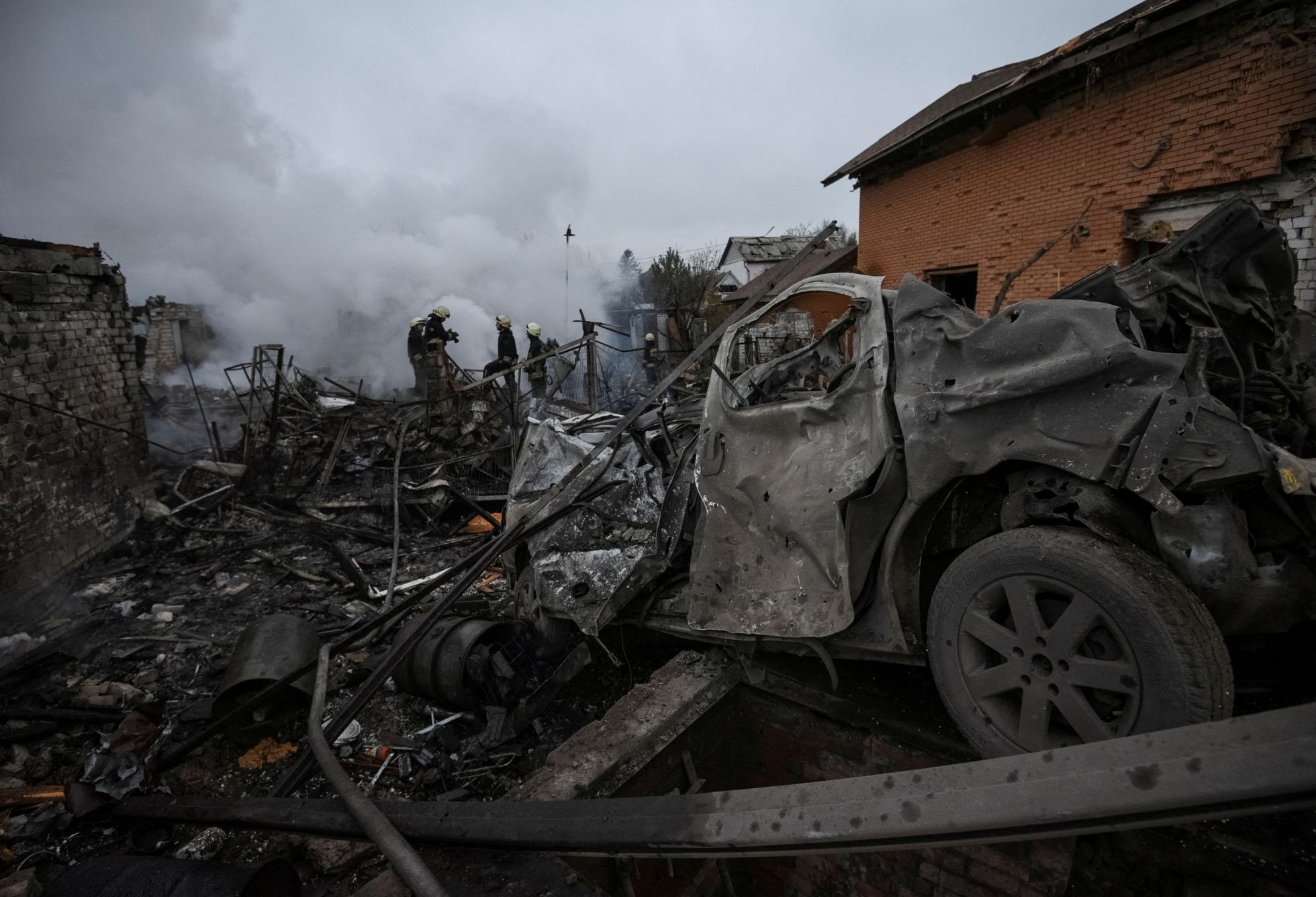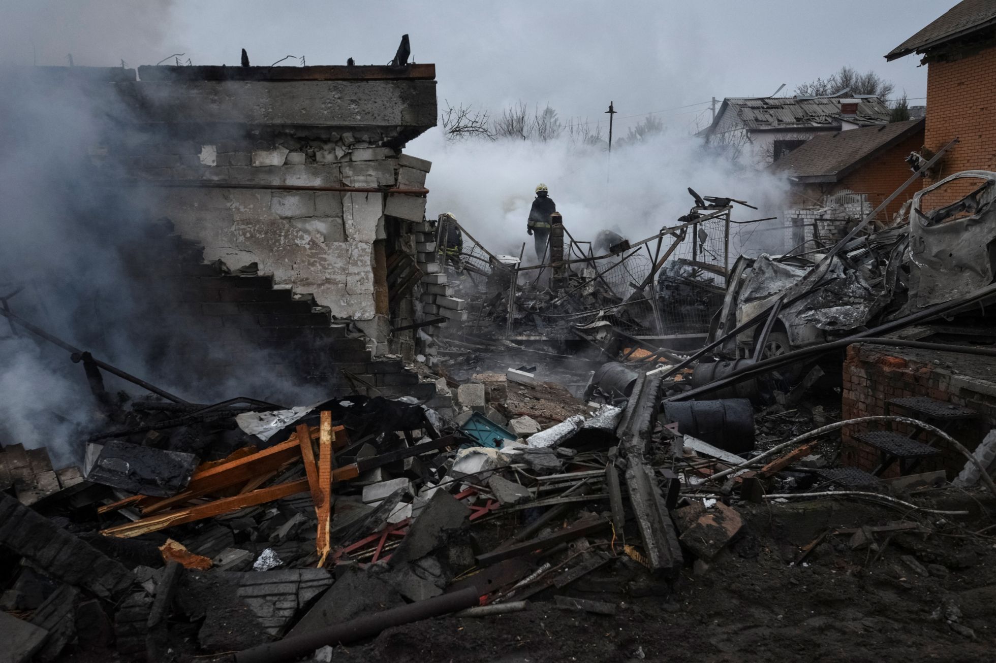 Mykola Synelnykov / Reuters / Scanpix / LETA Пепелища частных домов в Днепре, уничтоженных в результате российского обстрела. По данным полиции Днепропетровской области, разрушено семь домов, есть пострадавшиеMykola Synelnykov / Reuters / Scanpix / LETA Спасатели у дома в частном секторе Днепра, сильно пострадавшего в результате российского ракетного обстрела города