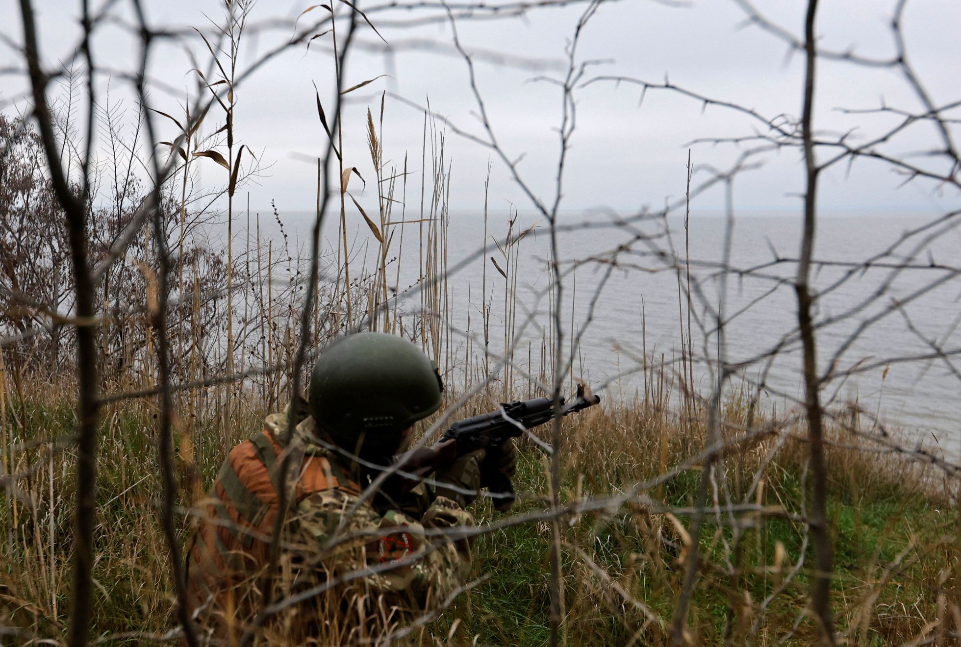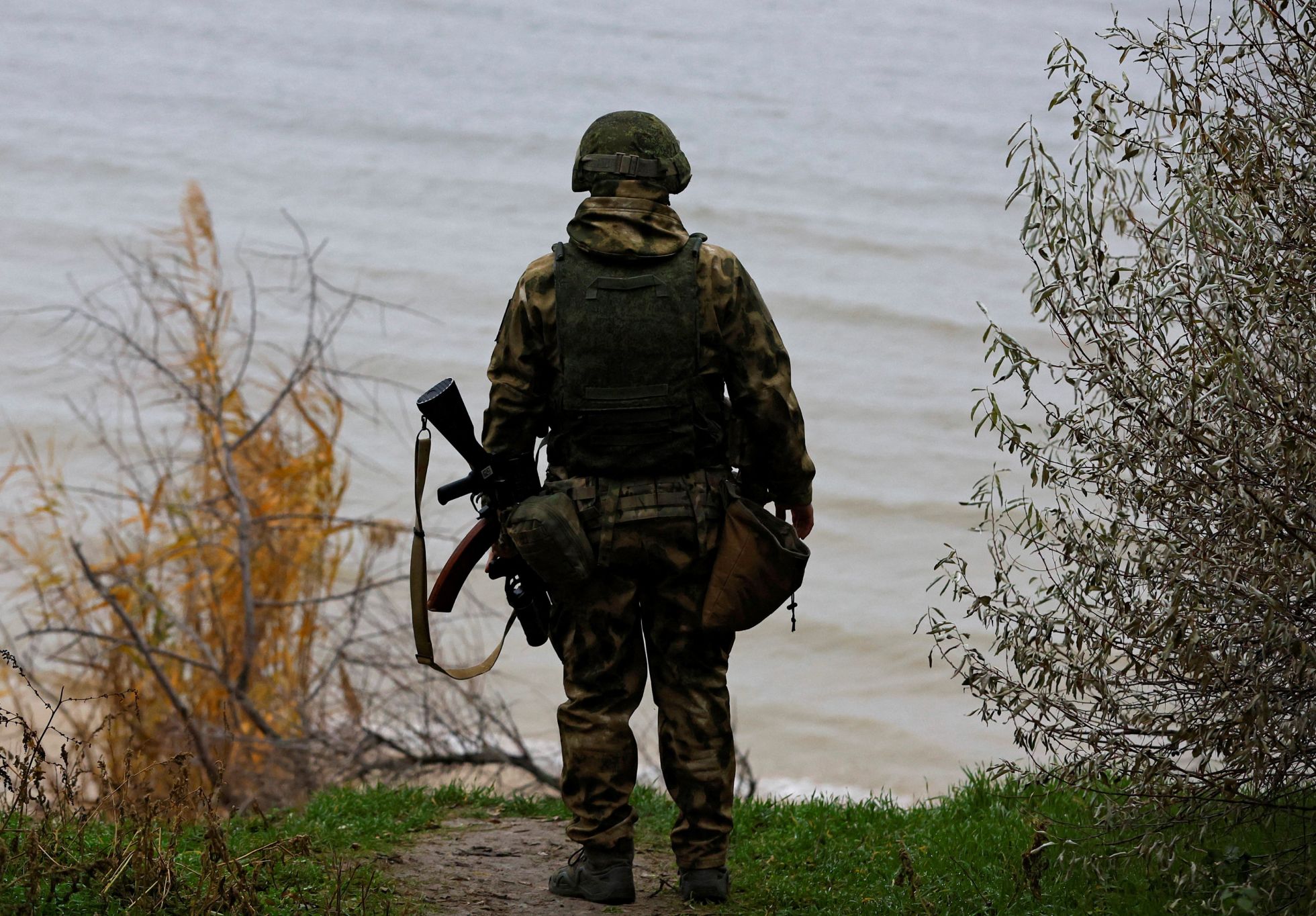 Alexander Ermochenko / Reuters / Scanpix / LETA Российский военнослужащий на левом берегу Днепра в Запорожской области. Российские войска оккупируют примерно две трети области на ее юге, включая Мелитополь, Бердянск и Энергодар (в котором находится Запорожская АЭС) с начала вторжения. Административный центр области, город Запорожье, находится под контролем УкраиныAlexander Ermochenko / Reuters / Scanpix / LETA Российские военнослужащие у пулеметного гнезда на левом берегу Днепра в оккупированной Запорожской областиAlexander Ermochenko / Reuters / Scanpix / LETA Российский солдат на боевой позиции на левом берегу Днепра в оккупированной части Запорожской области
