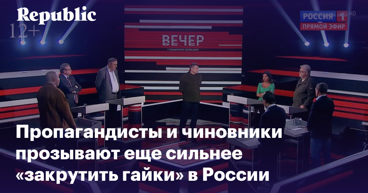 Российские пропагандисты считают, что в России настало время для дальнейшего «закручивания гаек» и запуска нового маховика репрессий. Главред RT Маргарита Симоньян и ведущий «России 1» Владимир Соловьев накануне призвали судить уехавших из страны противников войны и критиков политики Кремля по уголовной статье о госизмене. Одновременно эксперты Совета безопасности РФ заявили о необходимости усилить борьбу с вмешательством Запада в дела Москвы, а глава Конституционного суда РФ Валерий Зорькин объяснил, как можно вернуть смертную казнь в России.