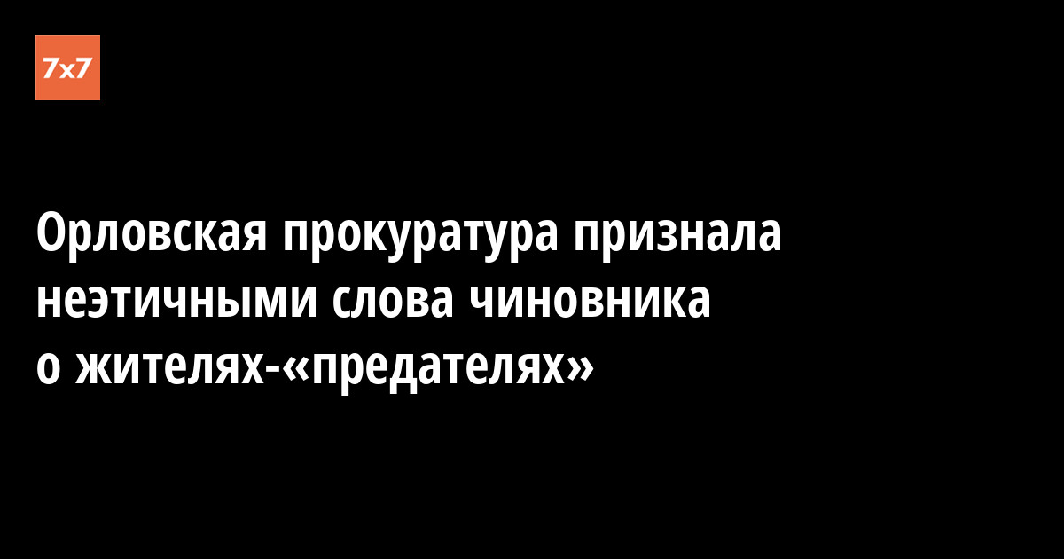 Орловская прокуратура сочла высказывания советника губернатора Сергея Лежнева нарушением этики. Чиновник в соцсетях назвал жителей «предателями» и «розовыми жопами». При этом ведомство отказалось составлять на Лежнева протокол по статье об оскорблении. Ответ прокуратуры 30 ноября опубликовал Telegram-канал «Список Носова».