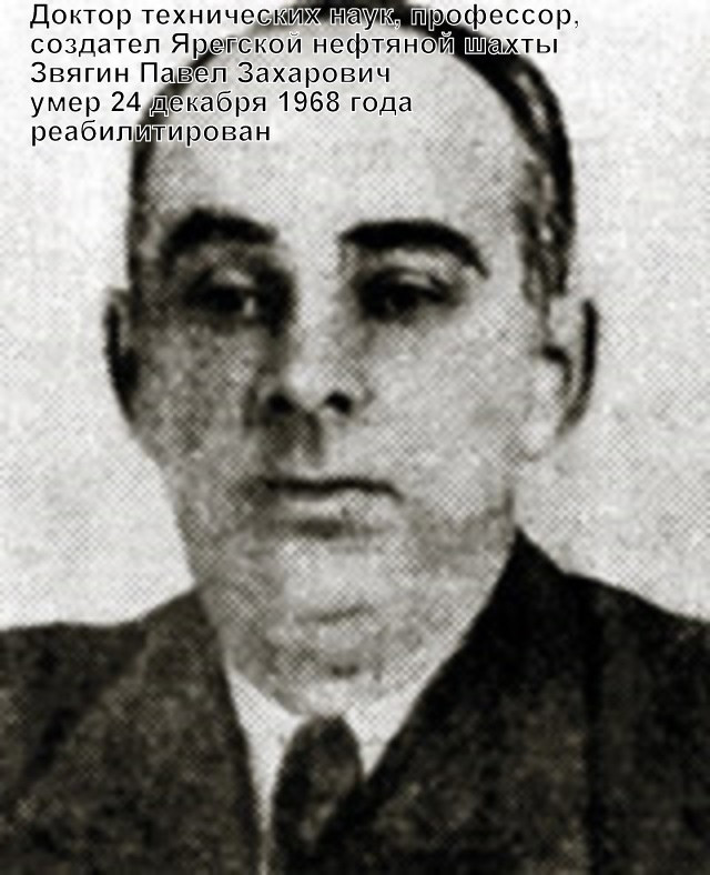 Горного инженера Павла Звягина арестовали в 1936 году и приговорили к 5 годам лагерей. Отбывал наказание в Ухтпечлаге и Ухтижемлаге. С 1938 года руководил проектированием и строительством первой нефтяной шахты на Ярегском месторождении. После условно-досрочного освобождения в 1940–1952 годах работал на руководящих должностях Ухтинского комбинате НКВД.