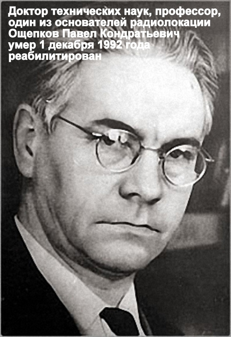 Основатель отечественной радиолокации и интроскопии, создатель аппаратуры для обнаружения самолетов с помощью электромагнитного луча Павел Ощепков был арестован в 1937 году в связи с «делом Тухачевского» и приговорен к 5 годам заключения. Отбывать наказание отправили в Ухтпечлаг, где задействовали на общих работах. По ходатайству наркома обороны в 1939 году Ощепков был освобожден, но 1 июля 1941 года его вновь арестовали и «за принадлежность к антисоветской организации» и снова приговорили к 5 годам заключения. По ходатайству академика Иоффе, Жукова, Молотова и Ворошилова Павла Ощепкова перевели в «шарашку» НКВД в Свердловске.