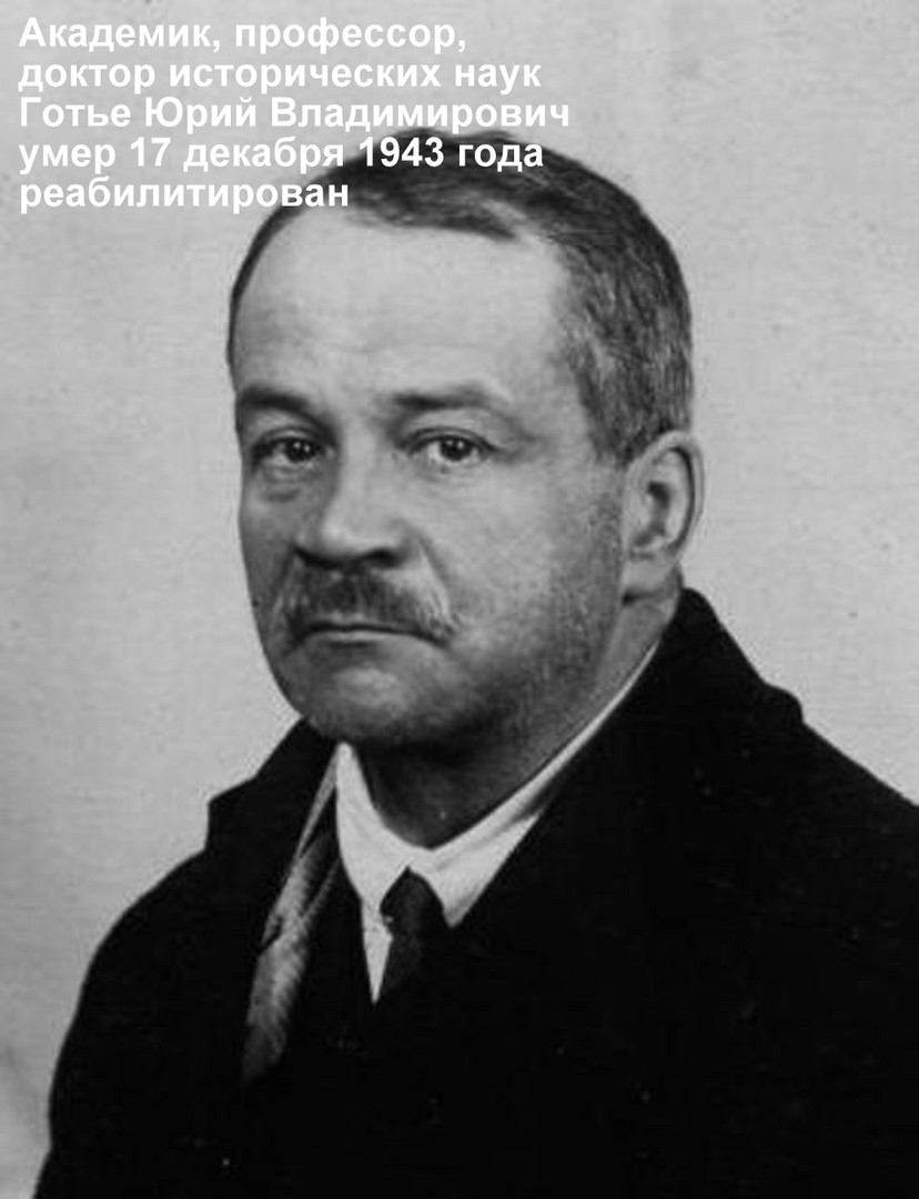 Российский и советский историк Юрий Готье занимался исследованиями экономического быта Московской Руси. В августе 1930 года он был арестован по «делу Академии наук» и приговорен к пяти годам лишения свободы. Отбывал наказание сначала в Ухтинско-Печорском лагере, а затем был выслан Самару. В Москву вернулся в 1934 году. Умер спустя девять лет, похоронен на Новодевичьем кладбище.
