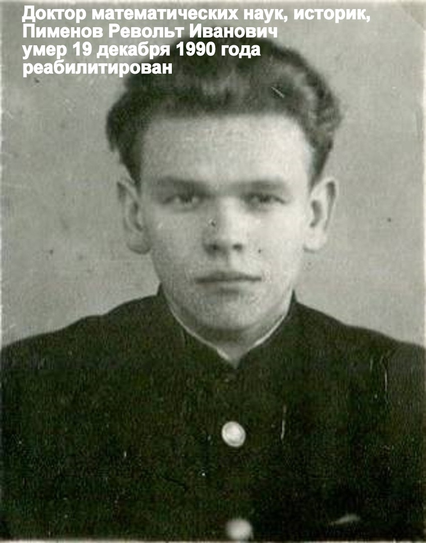 Имя математика, историка, космолога и правозащитника Револьта Пименова в Сыктывкаре хорошо известно. Напомню: в первый раз в Коми Республику, а точнее, в Воркуту, он попал в 1958 году, получив десять лет за антисоветскую деятельность. Освобожден досрочно по ходатайству академика Келдыша и поэта Твардовского. В 1970 году его вновь арестовали и приговорили к пяти годам ссылки в поселок Краснозатонский близ Сыктывкара. По настоянию Келдыша Револьт Иванович стал научным сотрудником Коми филиала Академии наук СССР. Весной 1989 года его избрали председателем правления Сыктывкарского общества «Мемориал», а в 1990 году он стал народным депутатом РСФСР, вошел в состав Конституционной комиссии. Поработать не успел, скончался от осложнений в результате онкологической операции в одной из берлинских клиник.