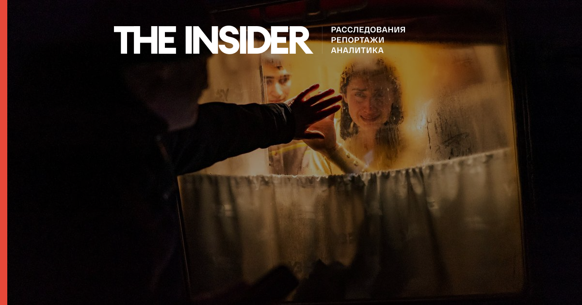 George Keburia says goodbye to his wife Maya and children as they board a train to Lviv at the Odessa train station in Odessa, Ukraine, on March 5.