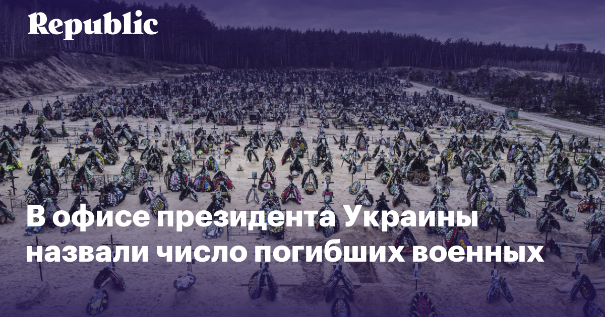 С начала российского вторжения погибли от 10 до 13 тысяч украинских военнослужащих, заявил советник главы офиса президента Украины Михаил Подоляк, сославшись на сведения Генштаба ВСУ. Это в разы меньше данных, которые озвучивали в Пентагоне и Еврокомиссии (ЕК). Глава ЕК Урсула фон дер Ляйен накануне сообщила о 100 тысячах погибших военных, но потом запись была удалена.
