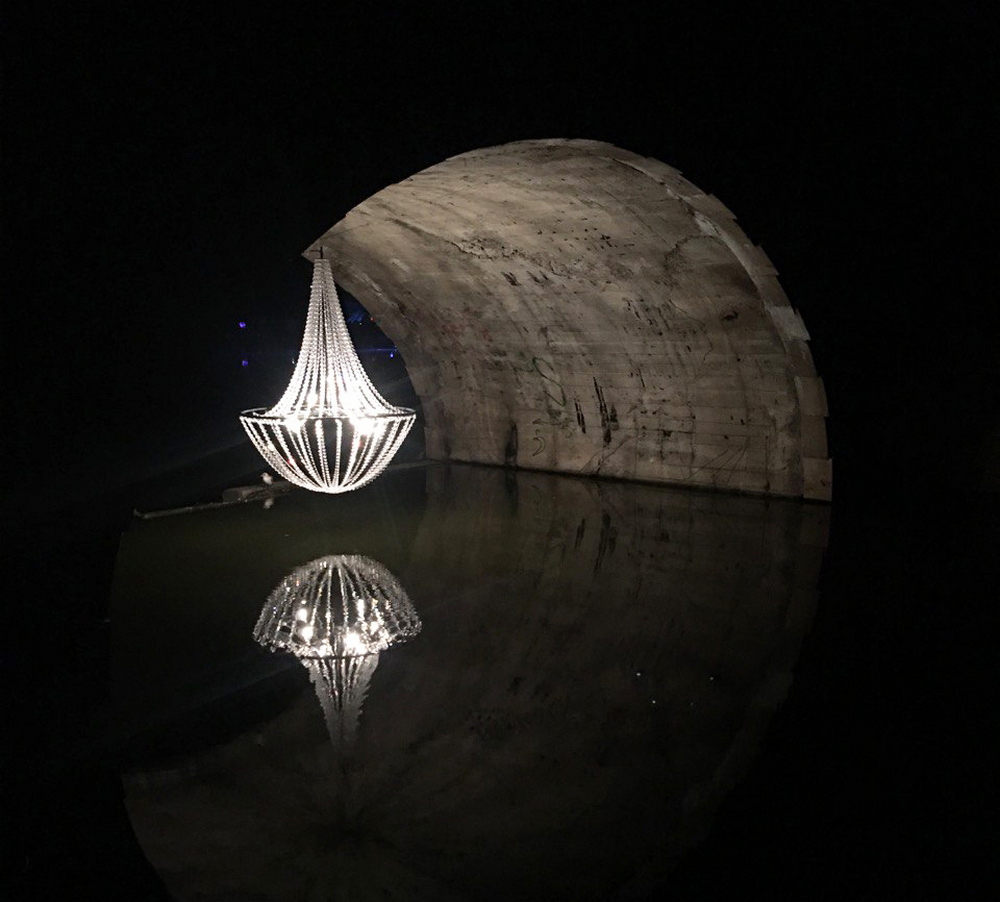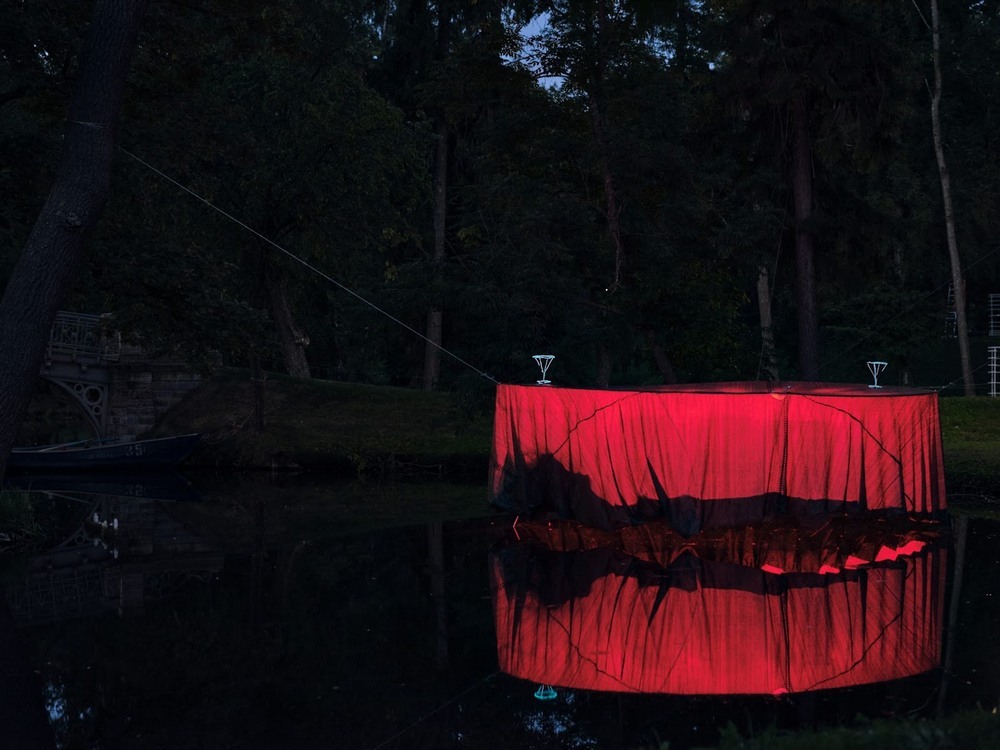 «Однажды ночью под мостом» — объект, который был специально придуман для Гатчинского парка. Он взаимодействует с ландшафтом. Как только человек заходил в парк, он первым делом видел нашу большую люстру под мостом и ее отражение в пруду. Он как бы сразу оказывался во дворце.