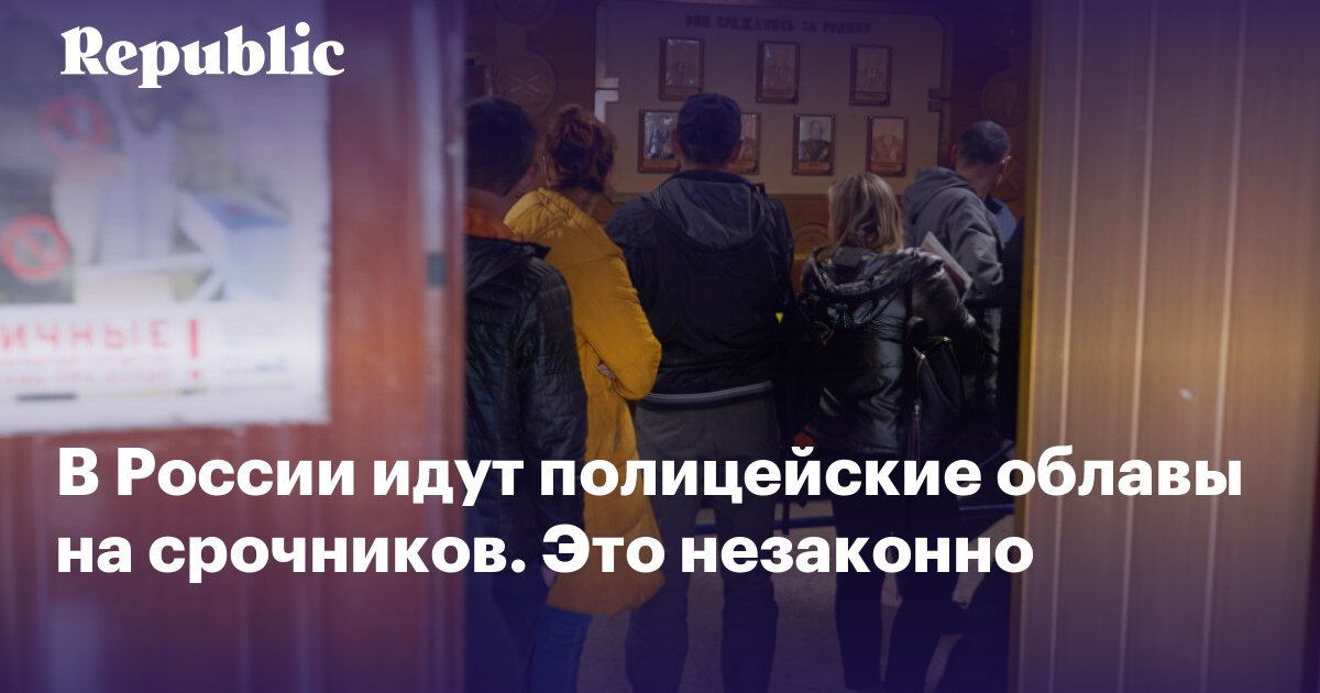 Правозащитники говорят о росте числа свидетельств полицейских облав на срочников в России. В этом процессе задействованы в том числе оперативники уголовного розыска. Молодых людей выслеживают и силой доставляют в военные комиссариаты, где у них отбирают мобильные телефоны, наспех проводят медицинское освидетельствование, после чего отправляют в армию. Юристы заявляют, что такая практика незаконна и просят изучить инструкции о том, как сопротивляться призыву.