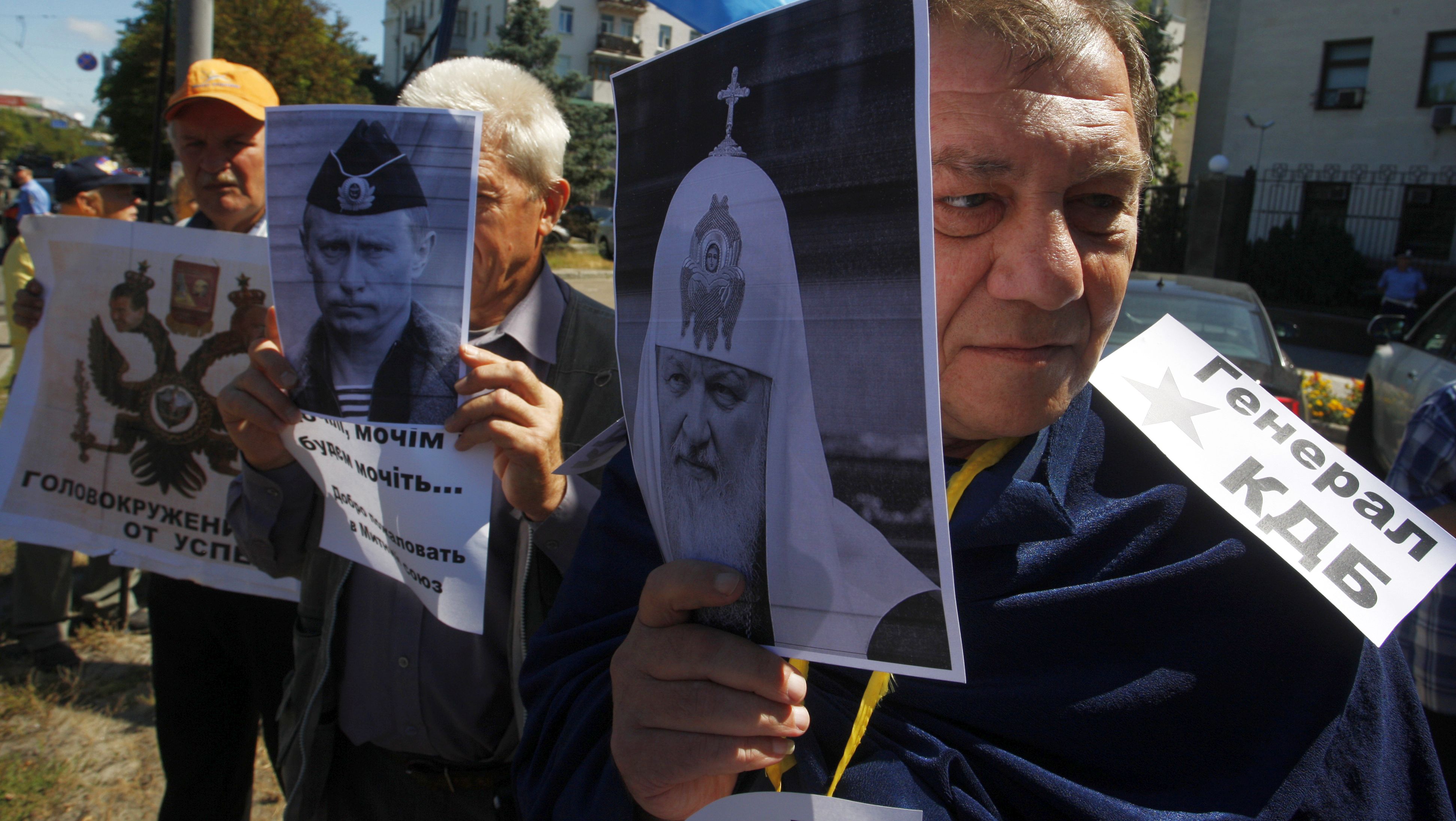 В течение девяти месяцев в ход идут заявления о "внешних силах", пытающихся разделить православных россиян и украинцев, о "сатанизации" Украины и об обязанности народа России "умирать за веру и отечество".