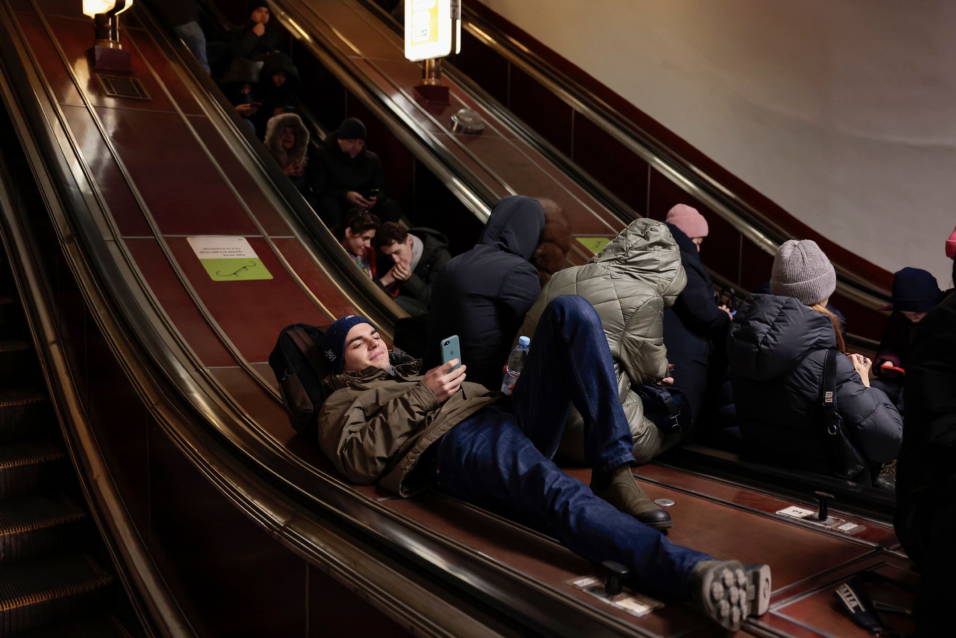 Киевляне прячутся в метро во время обстрела