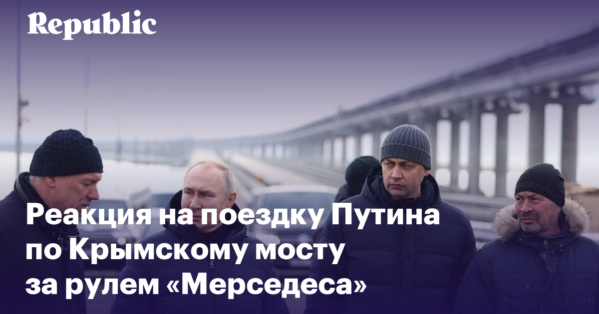 Поездка Владимира Путина по частично отремонтированному Крымскому мосту, поврежденному после взрыва грузовика, стала поводом для многочисленных обсуждений и шуток в соцсетях. Интернет-пользователи обратили внимание на то, что президент РФ предпочел немецкий «Мерседес» отечественному «Москвичу» или «Ладе Гранте». Кто-то не верит в сам факт такой поездки: за последние годы люди привыкли к тому, что Путин почти не появляется на публике, свои рабочие совещания проводит за длинным столом или по видеосвязи «в бункере». Другие удивляются, почему глава государства так много внимания уделяет сравнительно новому мосту в Крым, тогда как в российских регионах по-прежнему оставляет желать лучшего качество автомобильных дорог или их нет вовсе. Помимо этого, Путин почему-то не ездит в приграничные города, где под обстрелами гибнут мирные жители. Реакция пользователей — в подборке Republic.