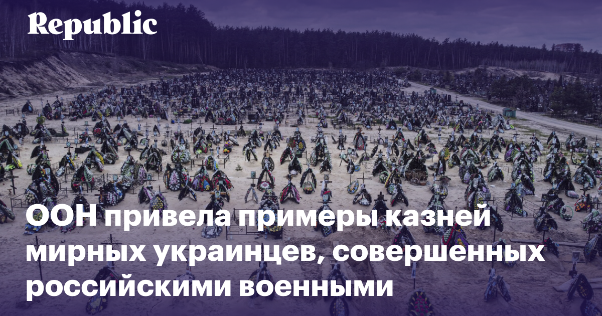 Офис Верховного комиссара по правам человека ООН опубликовал новый доклад, в котором говорится о внесудебных казнях мирных жителей Украины, совершенных российскими военными. На данный момент международные наблюдатели задокументировали 441 такой случай, включая убийства 72 женщин и 28 детей в Киевской, Черниговской и Сумской областях в начале войны. Как отмечается в отчете, общее число убитых, вероятно, значительно выше.