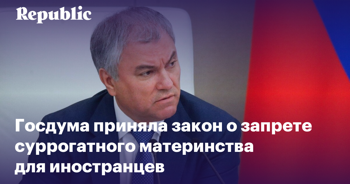 Госдума приняла в третьем окончательном чтении закон, который запрещает иностранцам пользоваться в России услугами суррогатного материнства. В основу законопроекта легли лживые данные, которые в том числе распространял спикер нижней палаты парламента Вячеслав Володин. На это указывал эксперт в области репродуктивного права Константин Свитнев, который назвал его «фантастически некомпетентным» политиком и попросил Следственный комитет провести по этому поводу проверку.