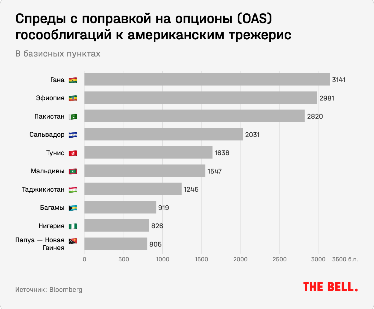 Но трудности испытывают не только закредитованные страны. Долги, по крайней мере, 15 из 72 развивающихся рынков, входящих в индекс Bloomberg (включая Эфиопию, Пакистан и Таджикистан), торгуются на уровнях, соответствующих проблемным (distressed). По оценкам ВБ, долги не менее 60% стран с низким уровнем доходов либо уже торгуются на проблемных уровнях, либо имеют большой риск оказаться там в ближайшем будущем. Инвесторы реагируют на изменение ситуации: чистый отток из фондов, ориентированных на долги развивающихся стран, только в ноябре составил $20 млрд, пишет WSJ со ссылкой на данные JP Morgan. И это не включая Китай. Всего, как пишет Bloomberg, с начала года чистый отток составляет около $80 млрд. Ситуация ухудшается: при продаже облигаций ставки растут, что еще больше снижает возможность проведения заимствований.