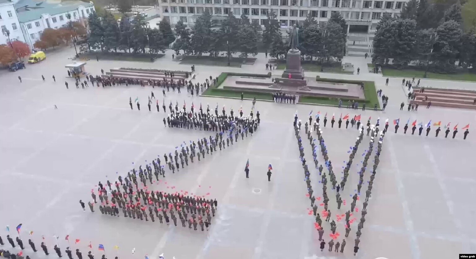 Одна из наиболее крупных акций с участием детей в Дагестане прошла 9 ноября. Она была приурочена ко Дню памяти погибших при исполнении служебных обязанностей сотрудников правоохранительных органов. Дети погибших полицейских с их портретами в руках прошли маршем по Махачкале, а затем выстроились на центральной площади в буквы Z и V, ставшие символами вторжения России в Украину, сообщало в своем телеграм-канале правительство Дагестана. Там утверждалось также, что в акции приняли участие более 500 детей. Все они – мальчики, одетые в одинаковые сапоги, брюки, куртки и шапки-ушанки, имитирующие военную форму.